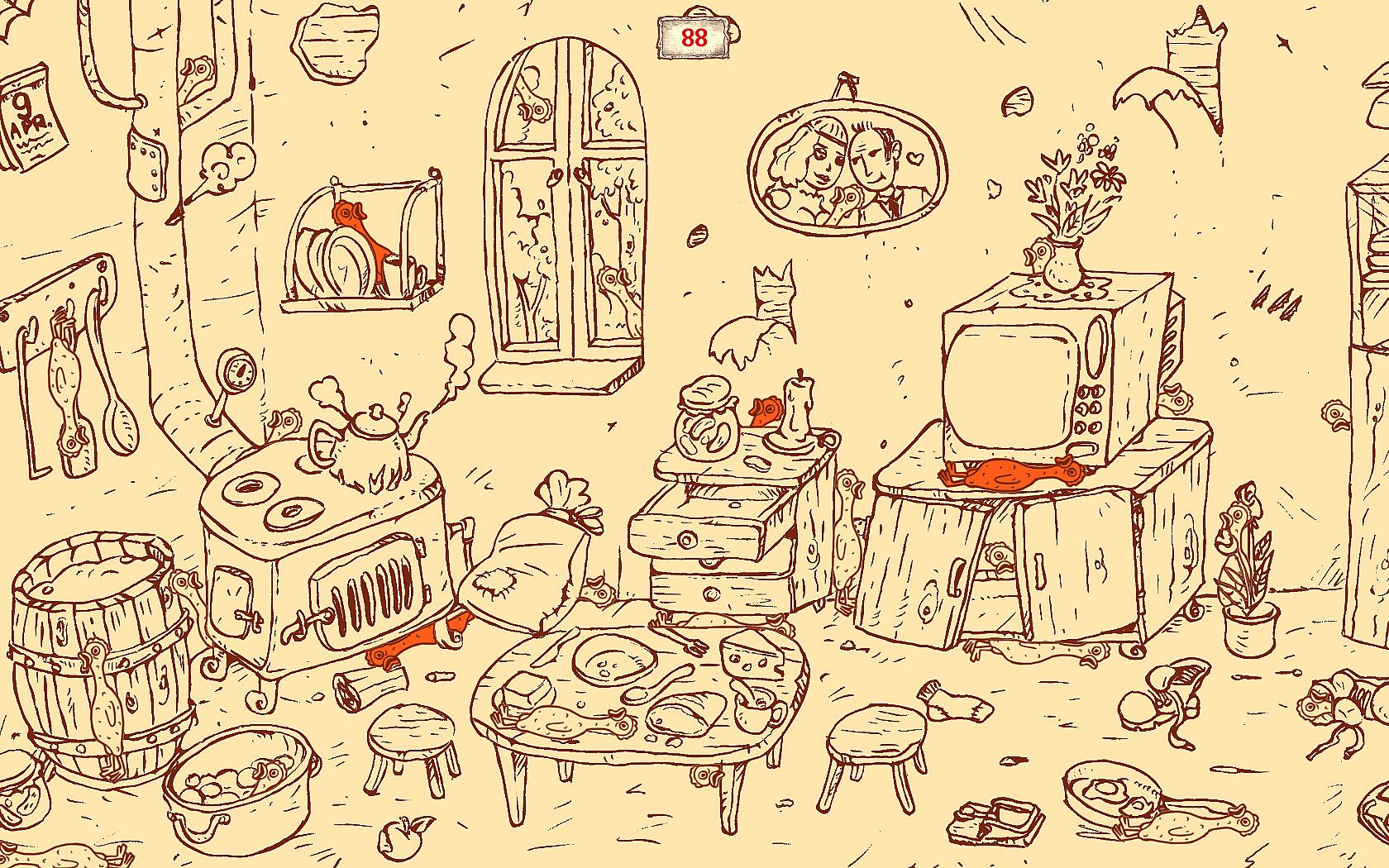 100 hidden Cats "Kitten House 2" is a hidden objects/hidden creatures game. The player's task is to find one hundred cats (and one hundred rubber chickens) located on the map.