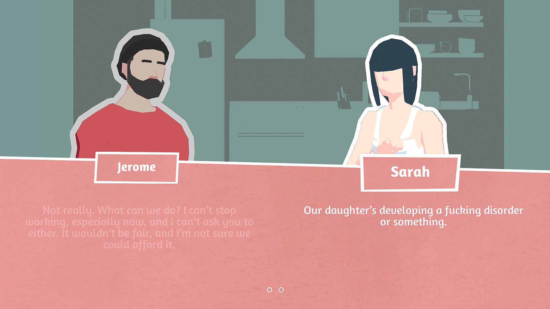 Locked In is the first truly two-player visual novel, simulating the breakdown of a marriage during lockdown.