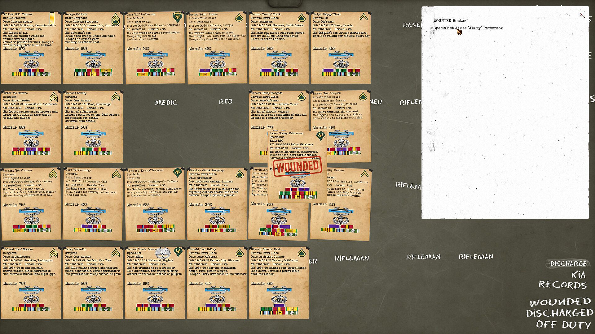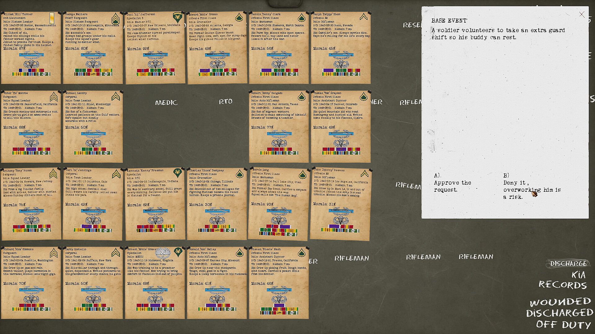 Every soldier serves a 12-month tour, with optional extensions up to 3 tours — if morale allows it.
