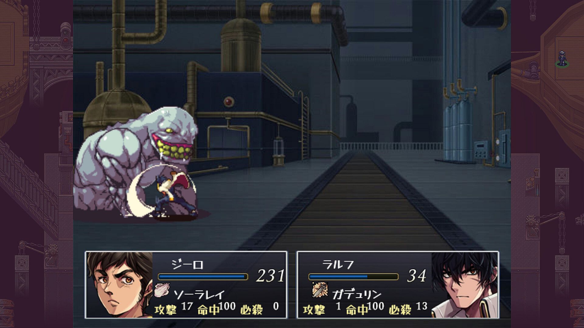 This is a turn-based simulation RPG. It consists of three parts: a strategy part in which you fight by moving many frames, an RPG part in which you explore freely like in a normal RPG, and a base part in which you interact with your friends.