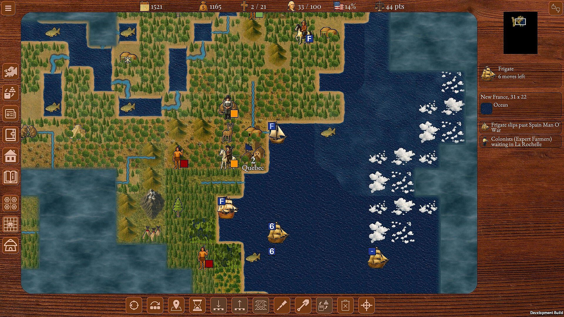 Found settlements in the untamed wilderness, manage your growing colonial population, and develop thriving towns across a vast continent. Recruit specialists, cultivate resources, and trade goods both locally and with your homeland to support your growing economy. Interact with indigenous peoples, forming alliances or facing conflict as you expand your influence.