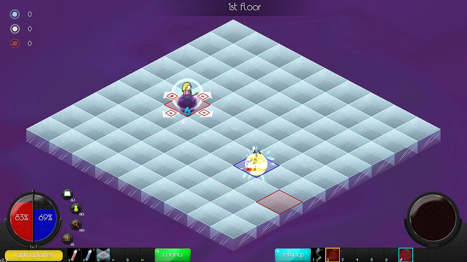 Your adventure takes place in a tower that has 150 floors filled with enemies. Use different magical skills unique to each mage to attack your enemies and defend yourself. Each floor made up of tiles has a durability limit. If you attack an enemy, you're also attacking the tile they occupy as well and it may break, sending the enemy to the previous floor. This same logic applies to your opponents as well. If the tile you occupy breaks, you fall to the previous floor as well. Defeat all monsters on a floor and an elevator appears on the floor, taking you to the next floor.