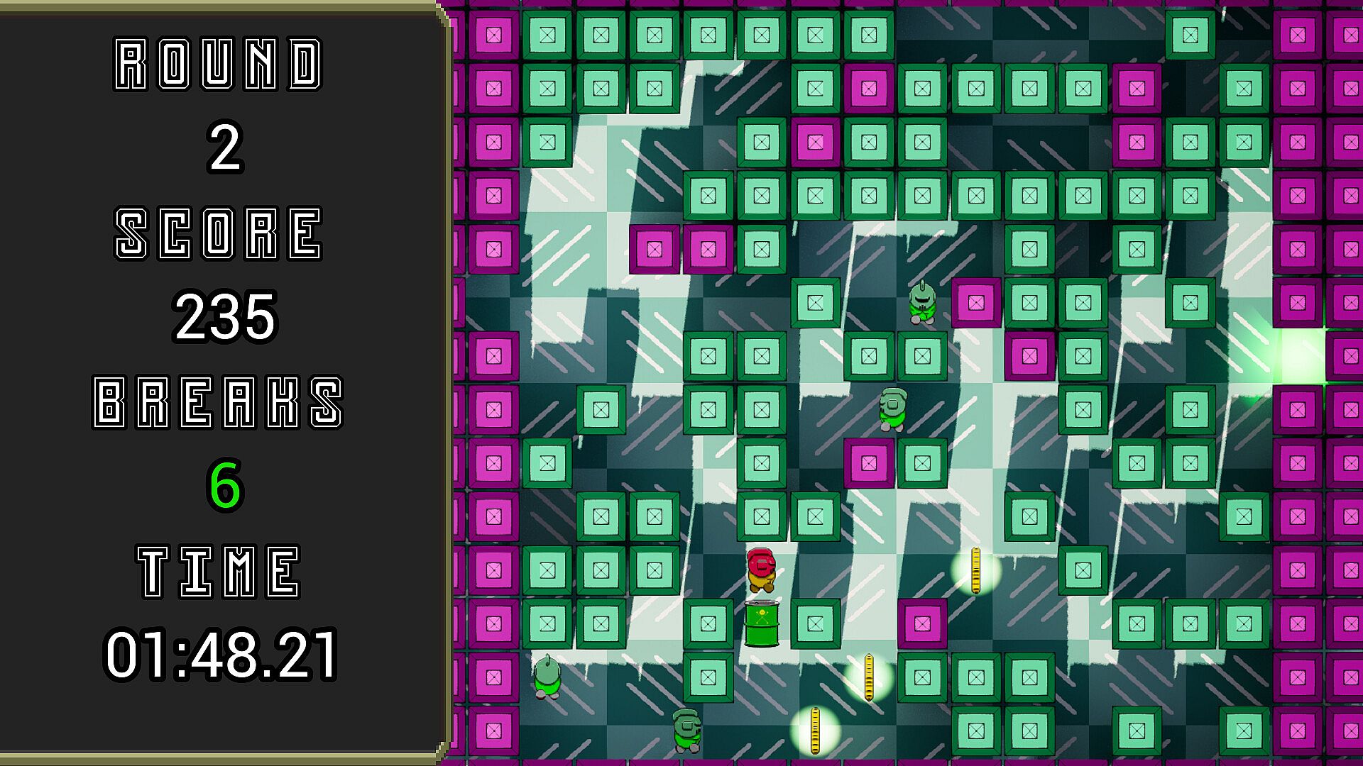 16X16 is a relaxing arcade game! Rack up points collecting coins, opening treasure chests and getting to the level exit. How many points can you rack up while navigating randomly generated levels. Break and move blocks to clear a path to the exit. As you navigate through puzzles, open chest for a chance to unlock over 30 different types of costumes to make replays unique.