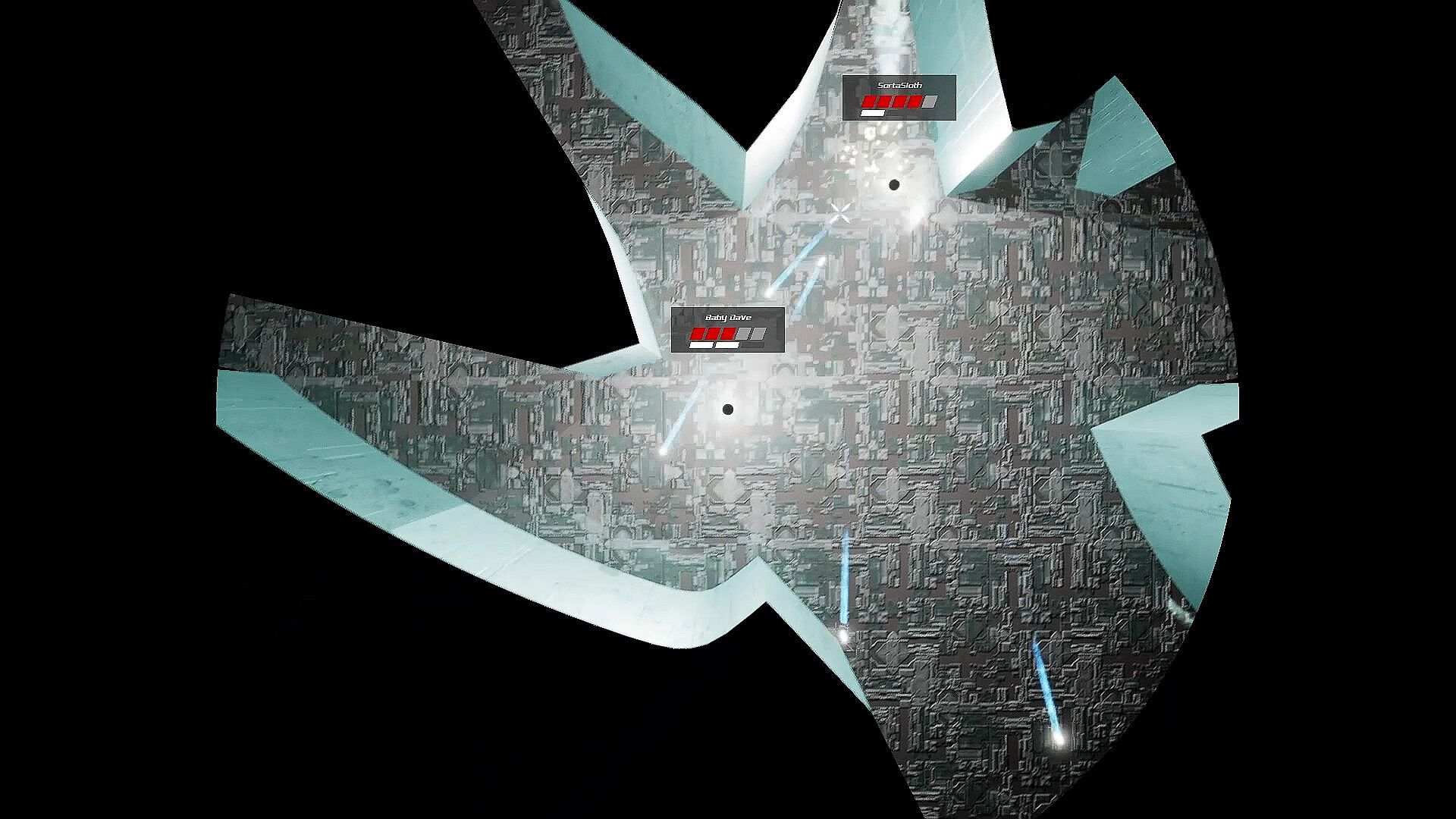 Rounds of 1v1 Me begin with your opponent on the opposite end of a large, dark arena. There are 5 maps, each emphasizing different playstyles. Kill your opponent to win a round. The first to win 3 rounds wins the game!