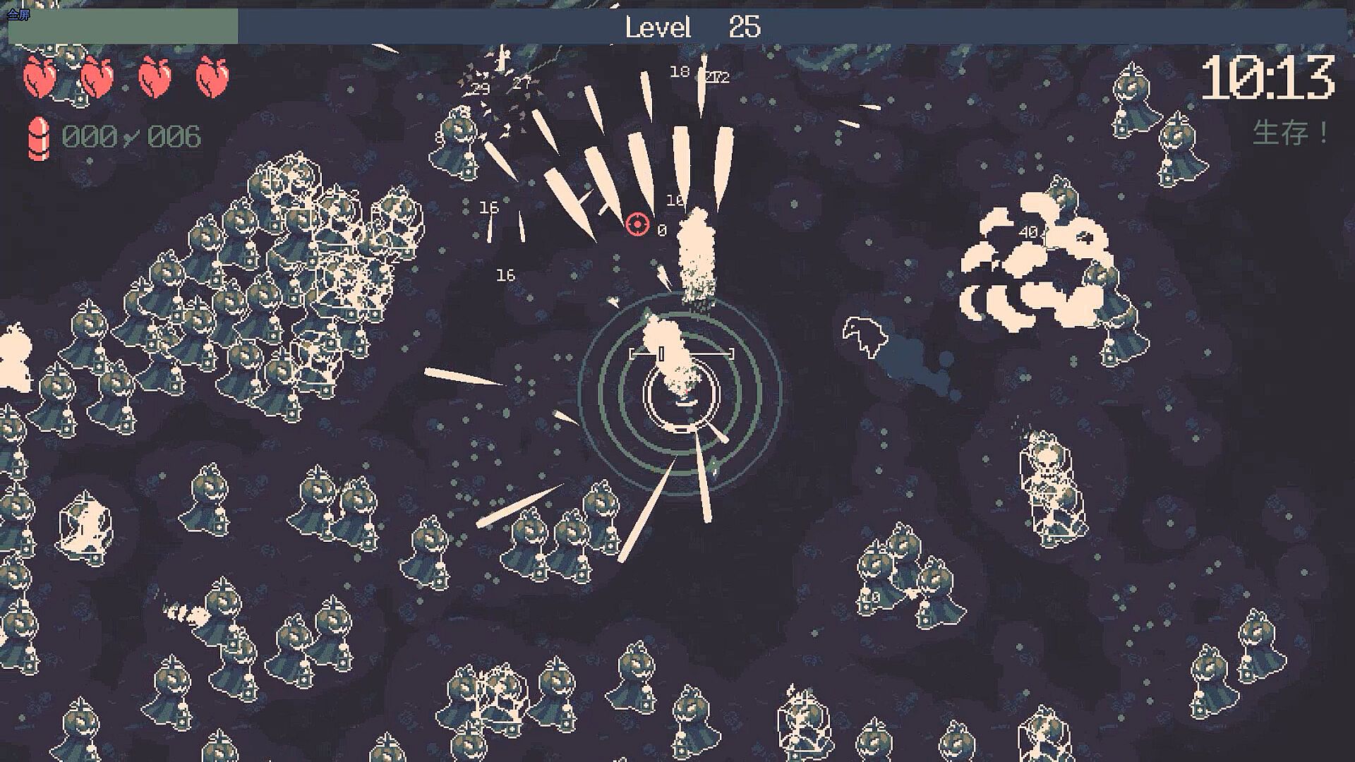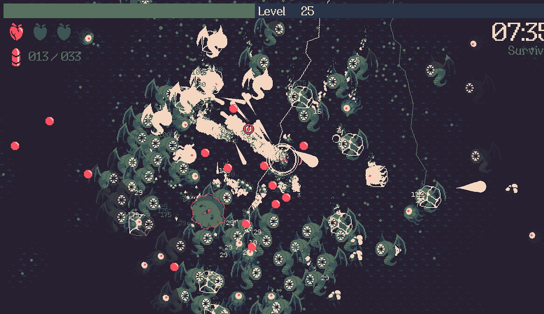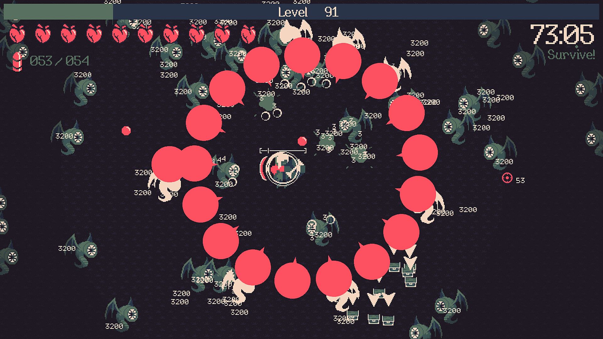 20 Minutes Till Dawn features active progression that carries across all runs. Use acquired Souls to harness the power of Runes and enhance your overall strength. Experiment with fresh build opportunities through a suite of additional characters and weapons to unlock. Use each death to your advantage and grow more powerful for the next run.