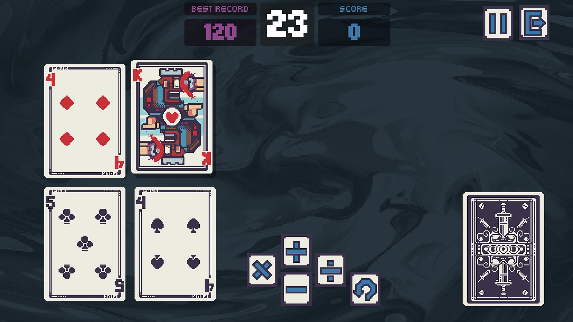 You need to use the four arithmetic operations of addition, subtraction, multiplication, and division to combine the randomly given 4 cards (value between 1 and 13). Each number must be used and can only be used once. If the final calculation result equals 24, you can score!
