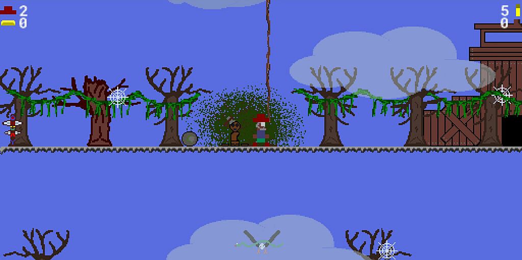 Jump, run, shoot, and dodge through sprawling multi-directional levels packed with enemies in this retro-flavored indie action platformer. Grab gold bars to secure victory, snag power-ups like hats for extra lives and boots for double jumps, and ride vultures to reach high spots while exploring buildings-including a barbershop with eight hairstyles per character. Pick from unique protagonists like Clint, who shrugs off snakes, or Rose, who leaps higher, and wield pistols, shotguns, or rifles to battle foes from zombies to laser-firing robots across easy, medium, and hard difficulties. Up to four players team up with gamepad or keyboard controls to tackle venomous snakes, stunning spiders, bouncing tomahawks, and respawning cavalry in chaotic multiplayer sessions. Each character brings distinct edges, such as Zeke's penetrating bullets or Zorra's double jump, fueling frantic co-op runs through every nook. This setup suits fans of fast-paced, skill-testing platform action.