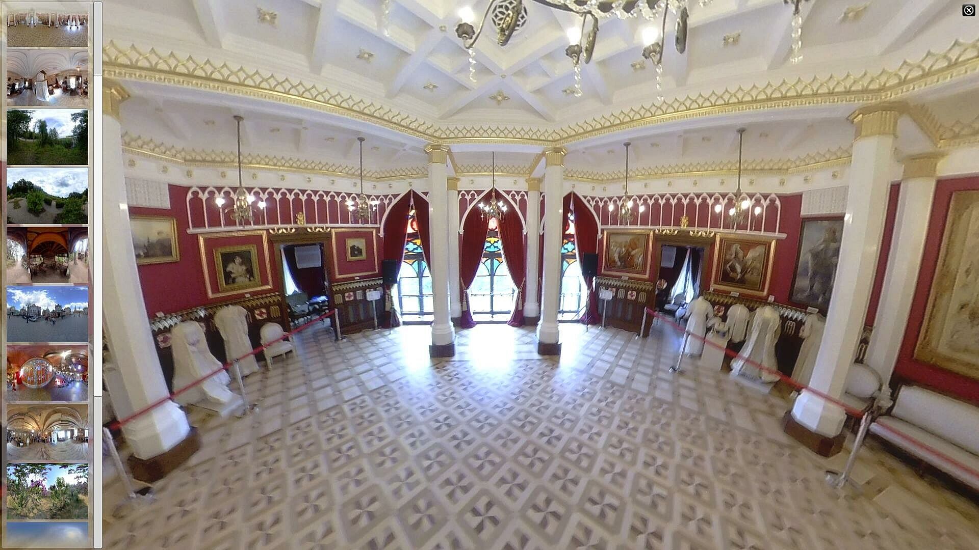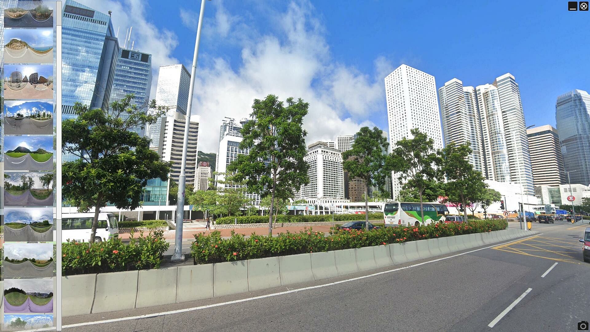 Automatic demonstration mode: If you release the mouse and keys for 5 seconds, the program will automatically start showing panoramas. It smoothly rotates the image horizontally by 400 degrees, then the panorama fades out and the next one appears.