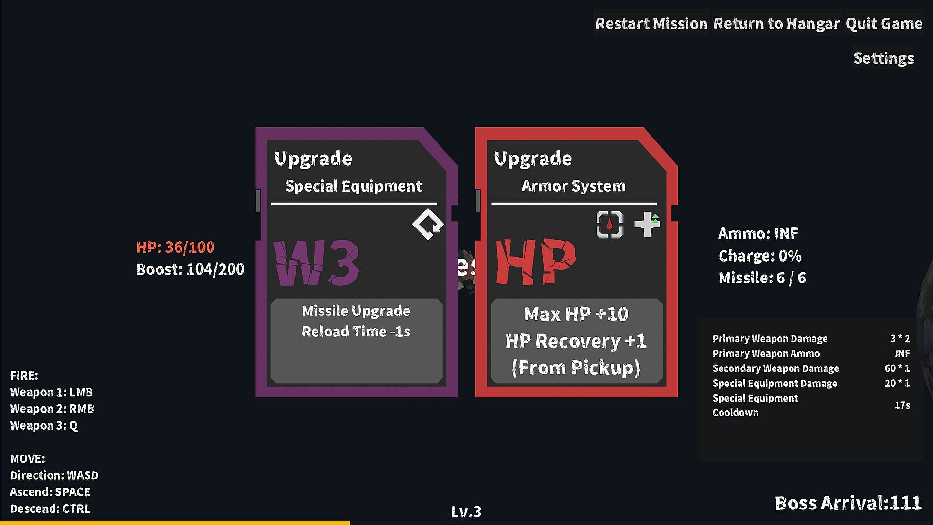 Difficulty 2 is the game’s standard difficulty: two bosses will appear, requiring you to adapt to their combinations while leveraging your space fighter’s unique features.