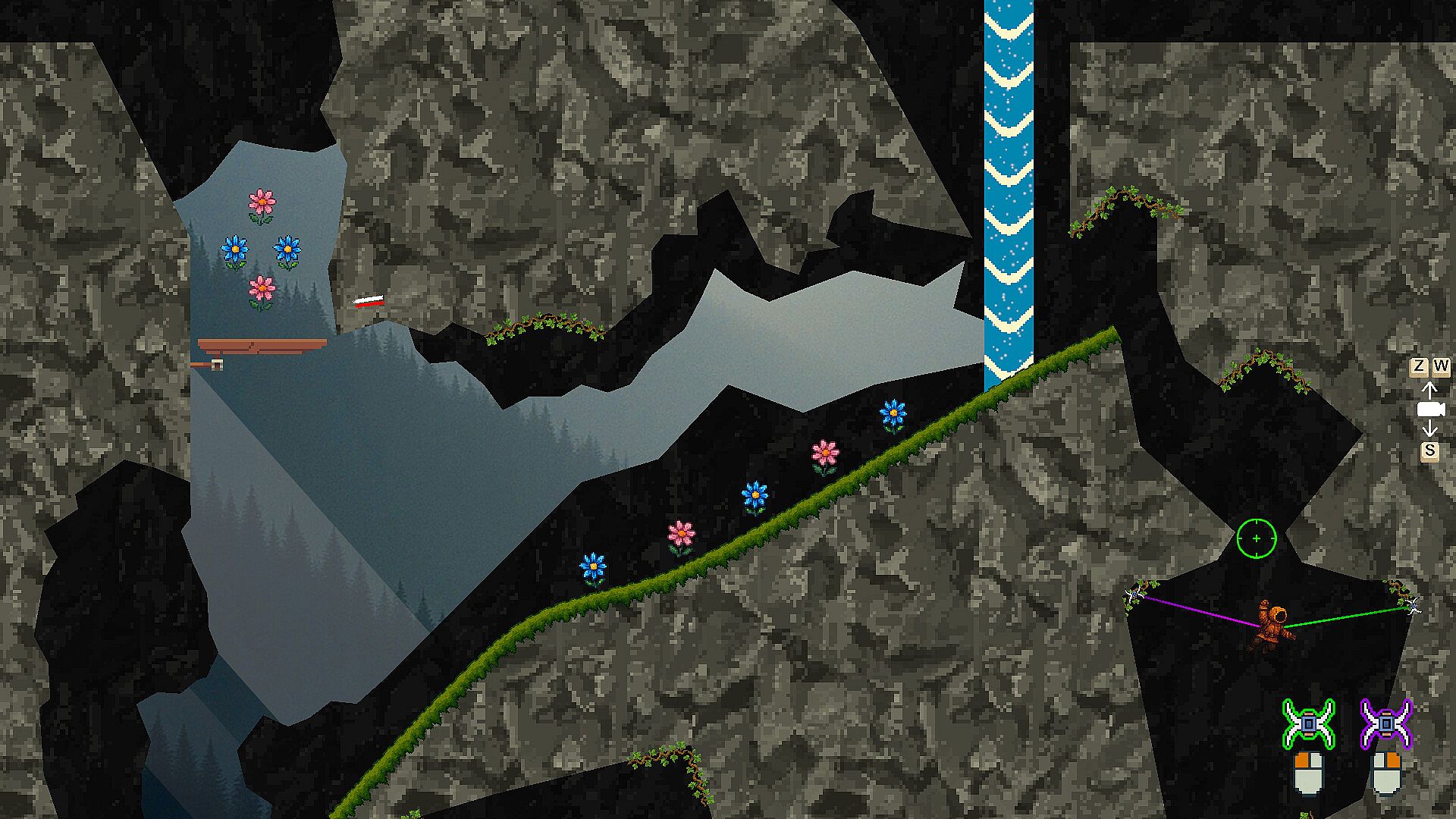 Dive into this climbing game where precision and mastery are essential, using your two independent grappling hooks. Start in the valley and lower slopes, traverse the ruins of an abandoned castle, brave powerful storms, venture into an ice cave illuminated by magical crystals, and push yourself to reach the top.