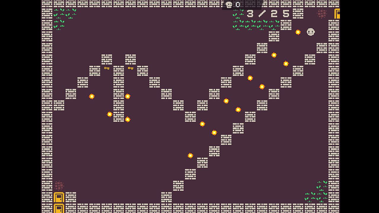 A game in an underground palace where you can control a smiling face to dodge the burning fireball through WASD or ↑←↓→ to get the key, and finally find a way out through one door after another.There are no save games for this game, and it will be restarted every time you quit.