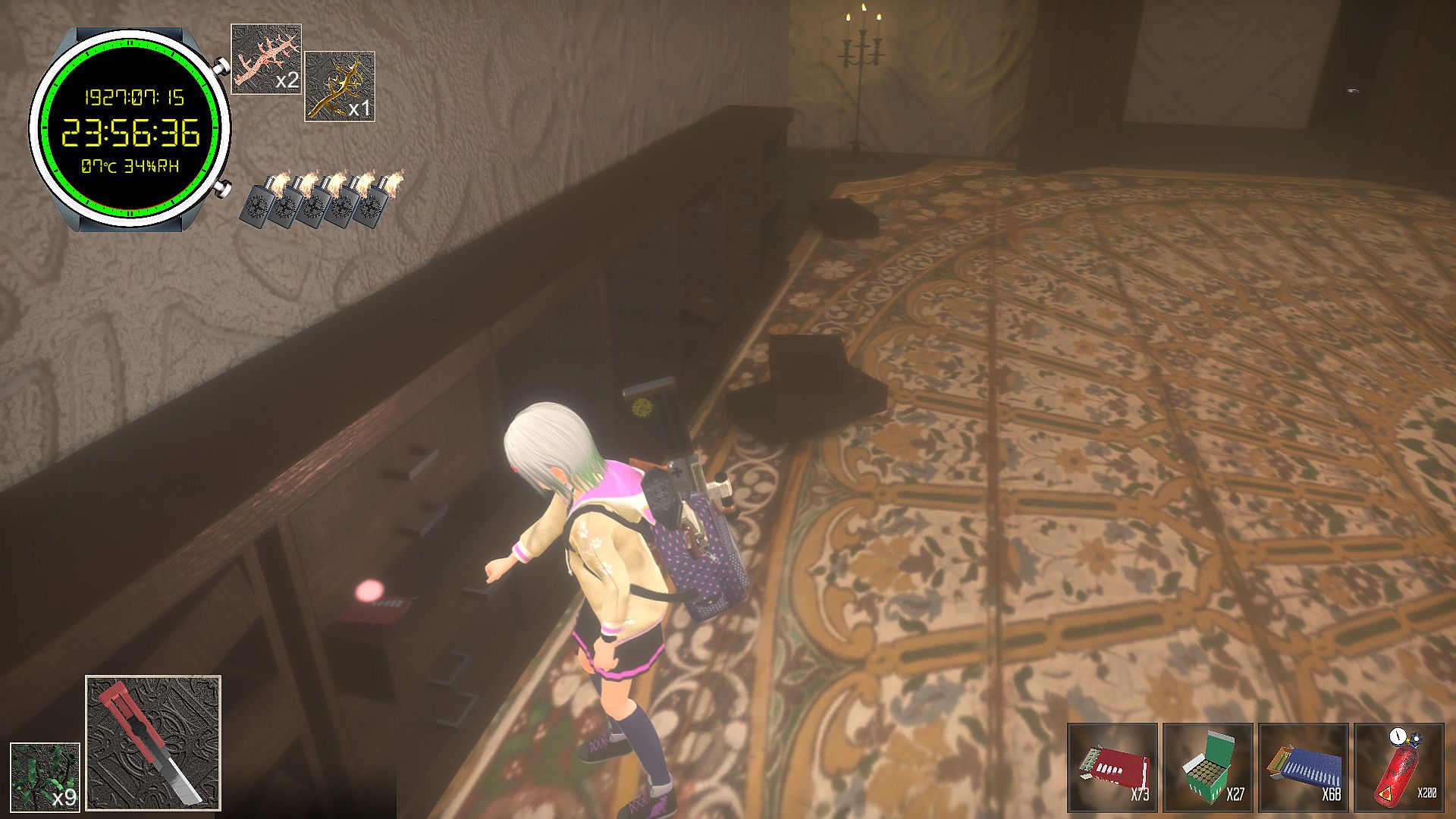 Some walls can also be damaged by guns, and there are bookshelves that can be interacted with to reveal hidden items.