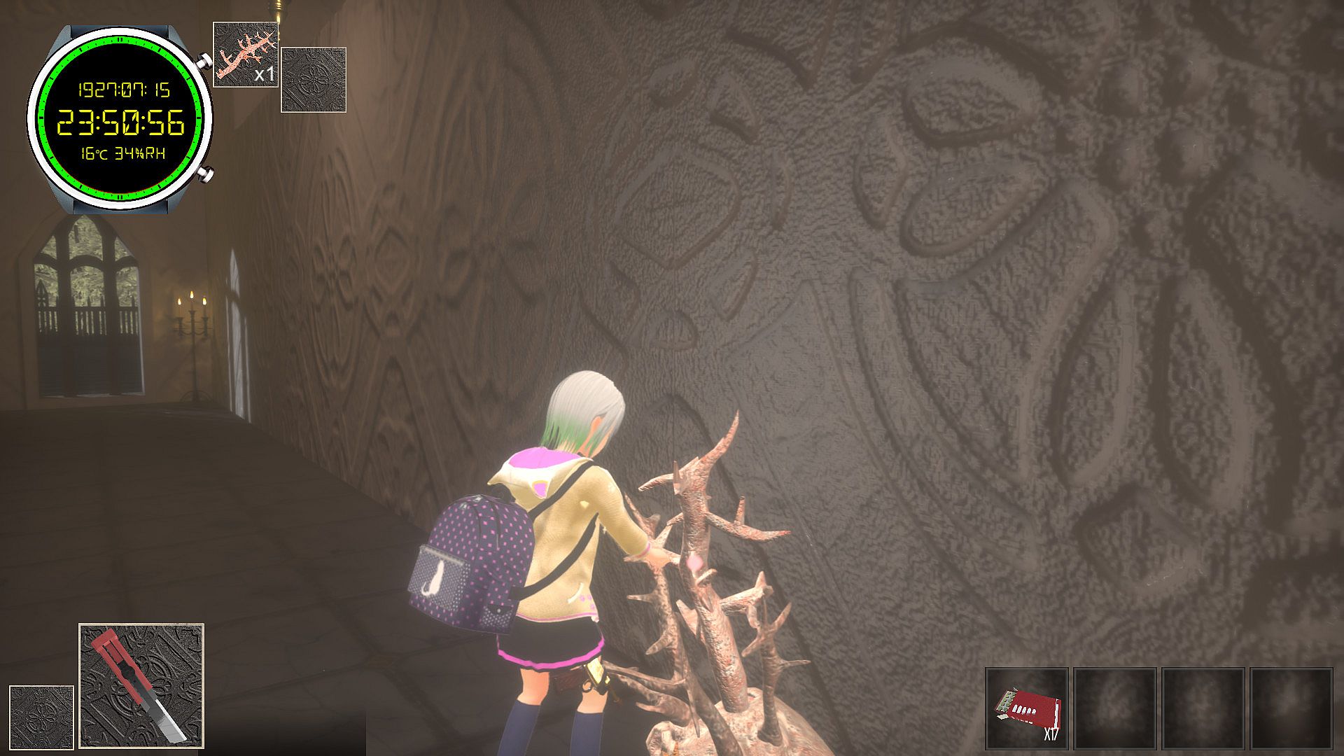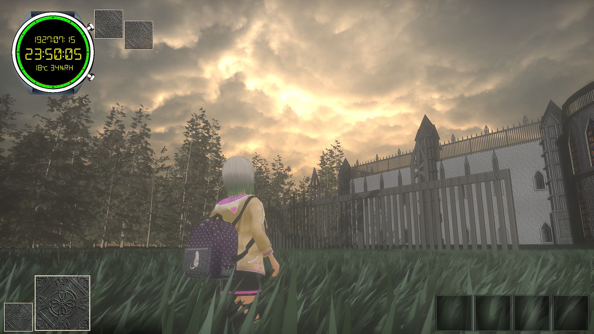 For the 600 seconds that remain until the day changes, Mutsuki can explore the church inside this tranquil dream world.
