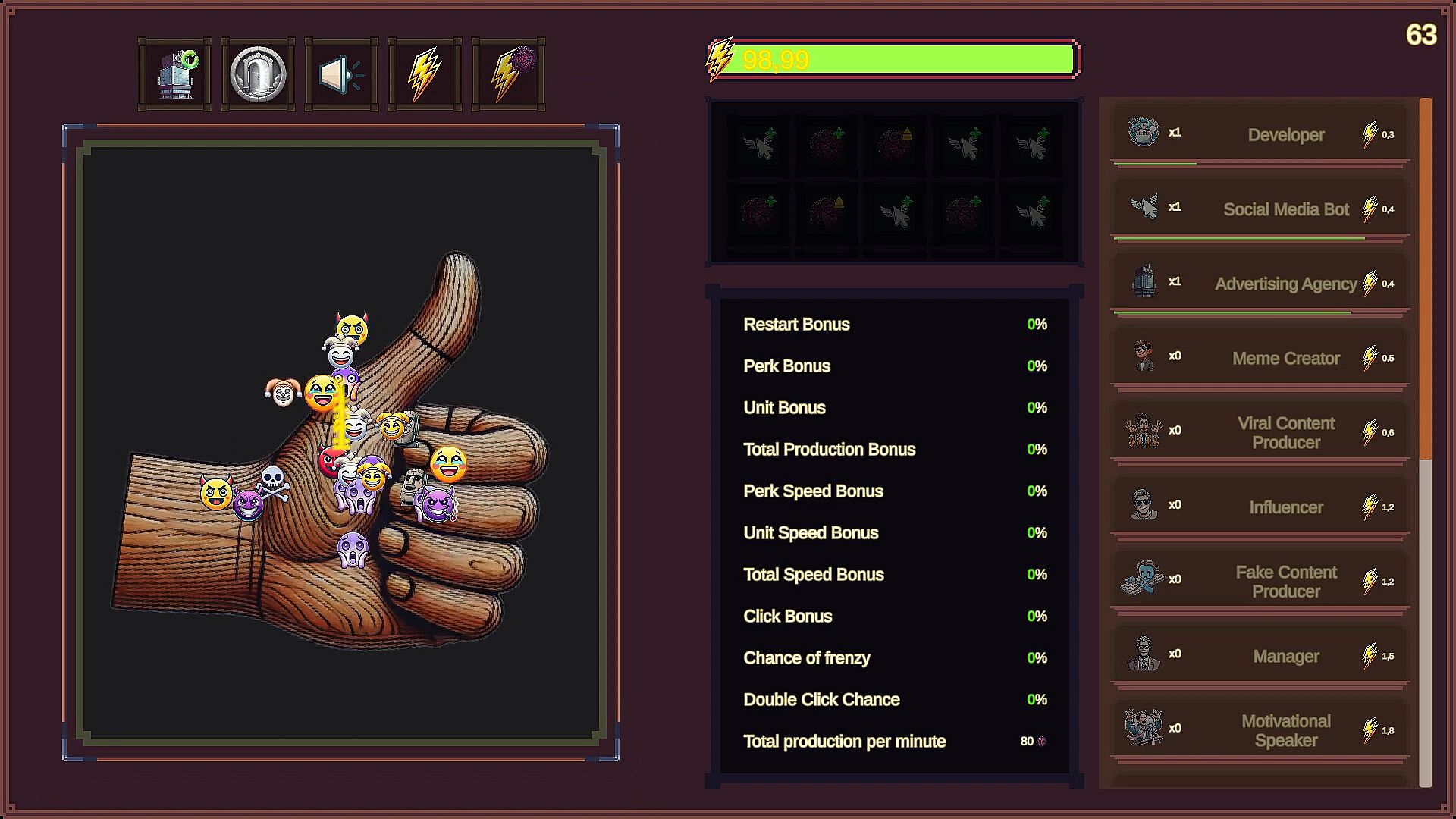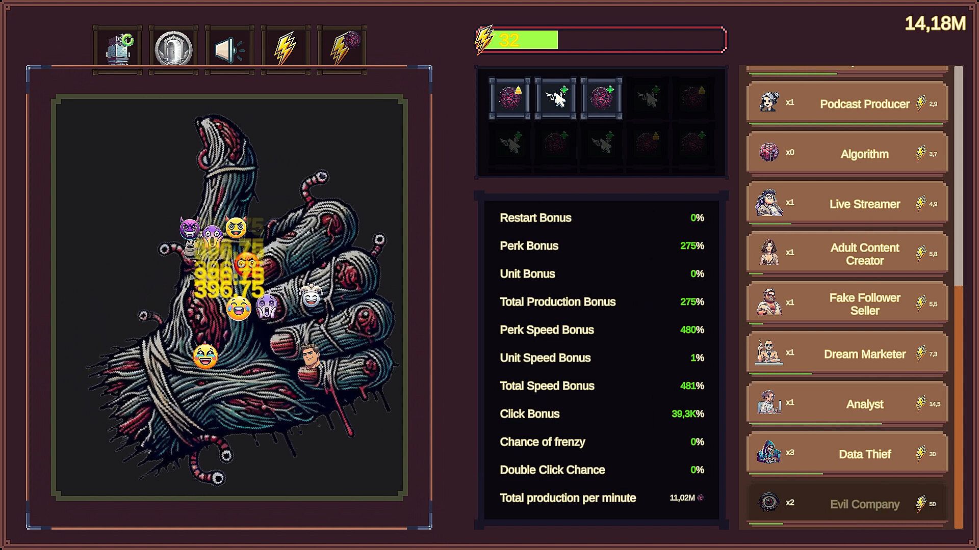 • An idle clicker game, where progress is driven by numbers, upgrades, and optimization, rewarding patience and long-term planning.