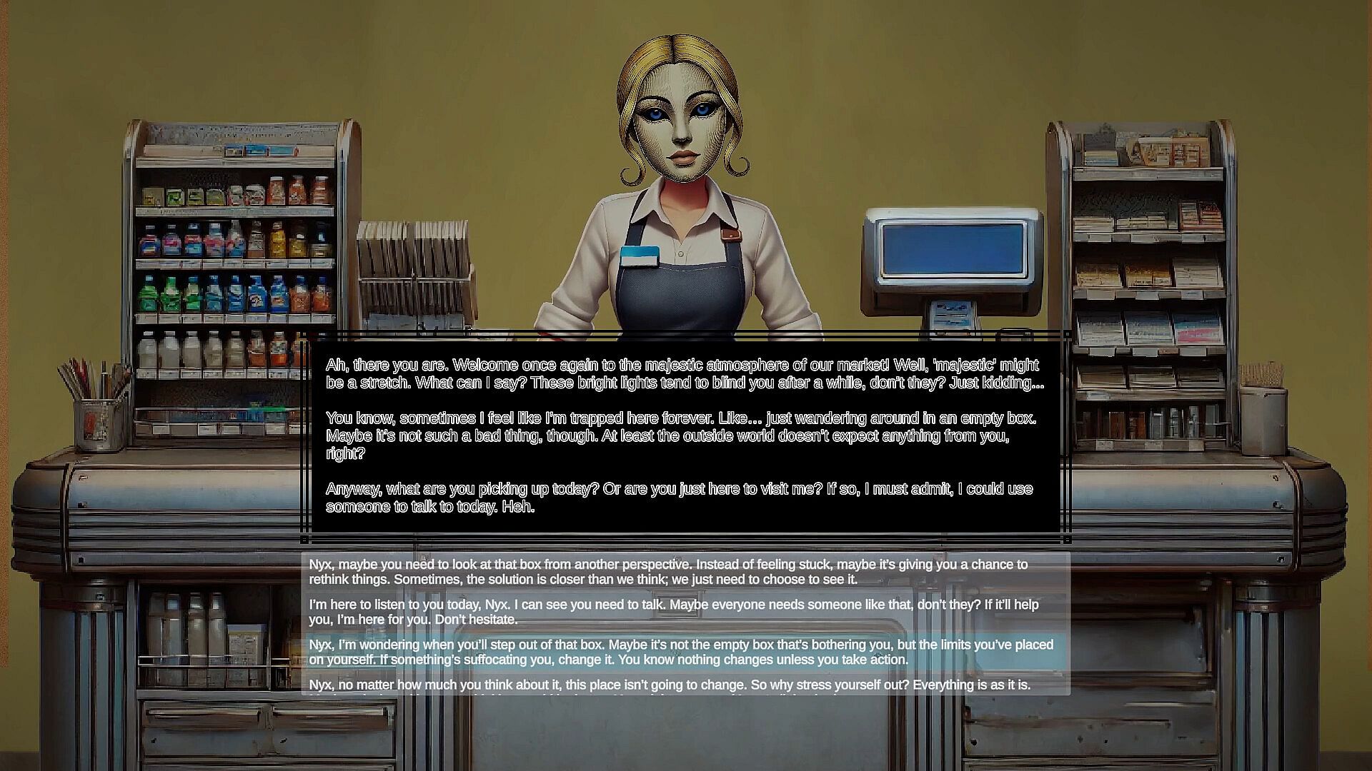 Alongside the games, you interact with a range of NPC characters through dialogue.