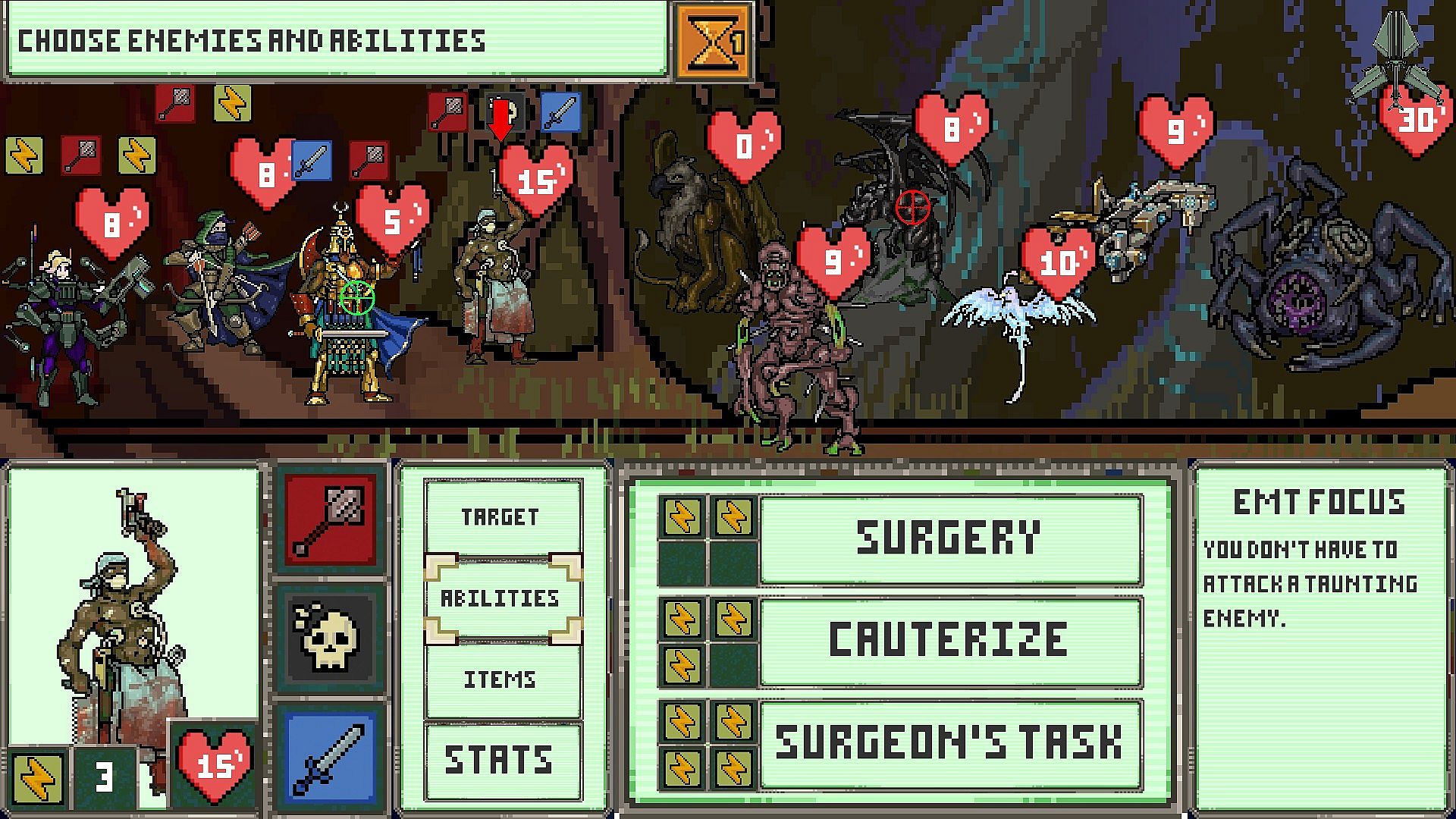2) Determine Hero Attacks: Choose which heroes will attack which enemies. Will you gang up to take out the hardest hitting enemy, or target the enemy healer instead?