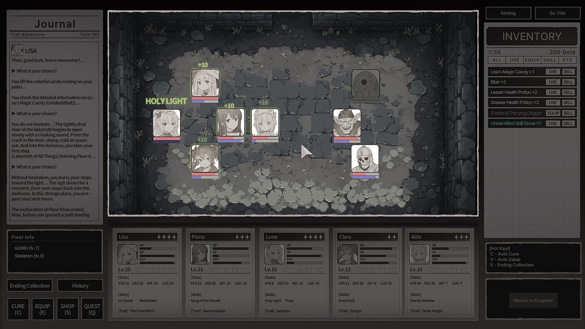 As you climb each floor, events and encounters change. Strangers you meet may become companions or unlock new classes/skills. Battles play out automatically, but the placement/combination/management you plan beforehand decides victory—low fatigue, high strategy.