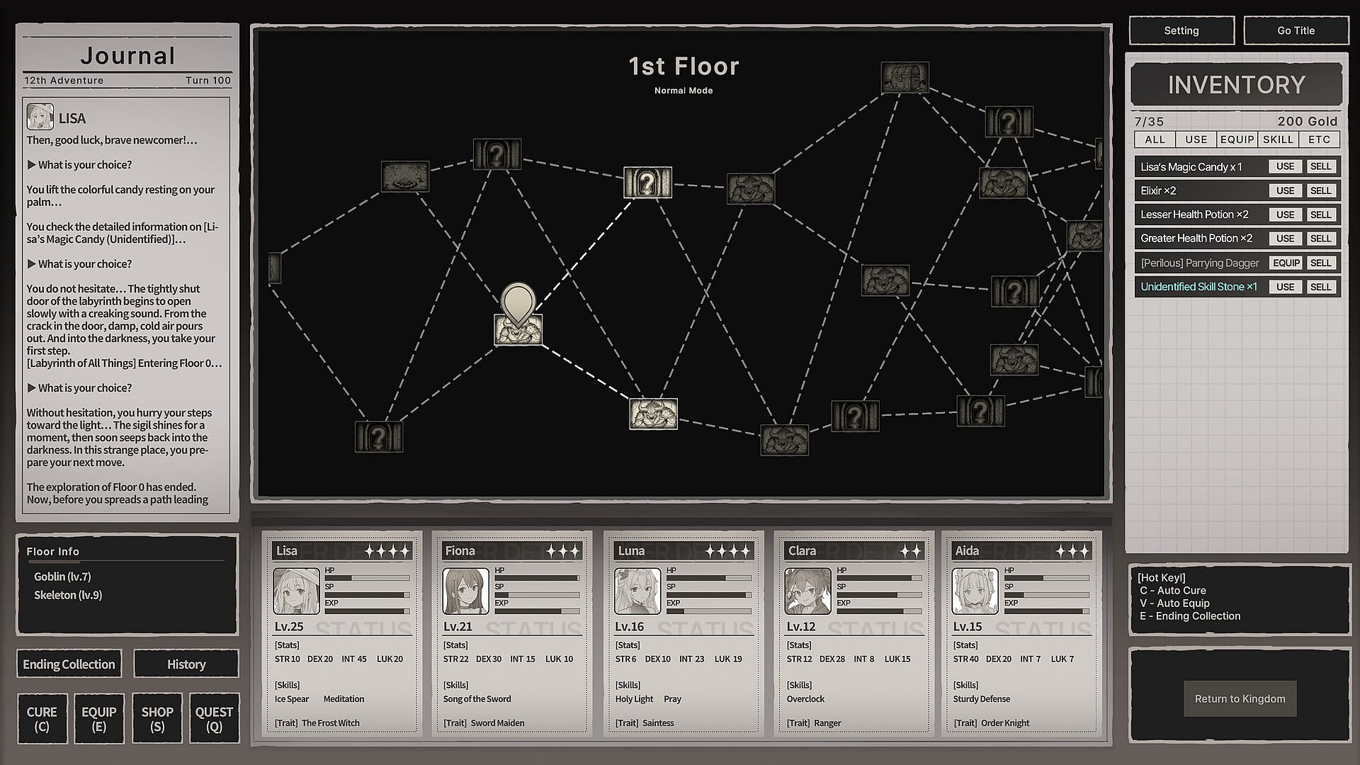 • Begin the Expedition – On each floor, choose nodes (shop/event/battle/treasure/boss) to create your route.