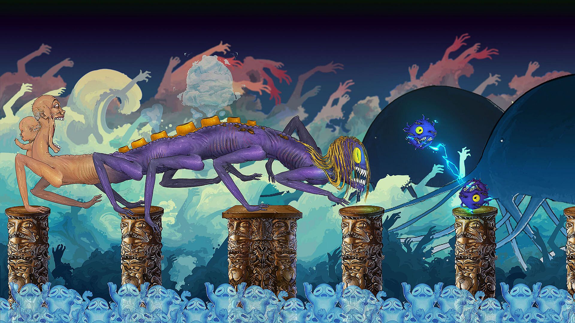 99 Fails is an impossibly difficult roguelite platformer set in Zeebo's surreal nightmare with bizarre monsters, set to music by legendary David Wise. The premise is very simple: traverse pillars in Zeebo's different forms while the bizarre environment tries to distract you!