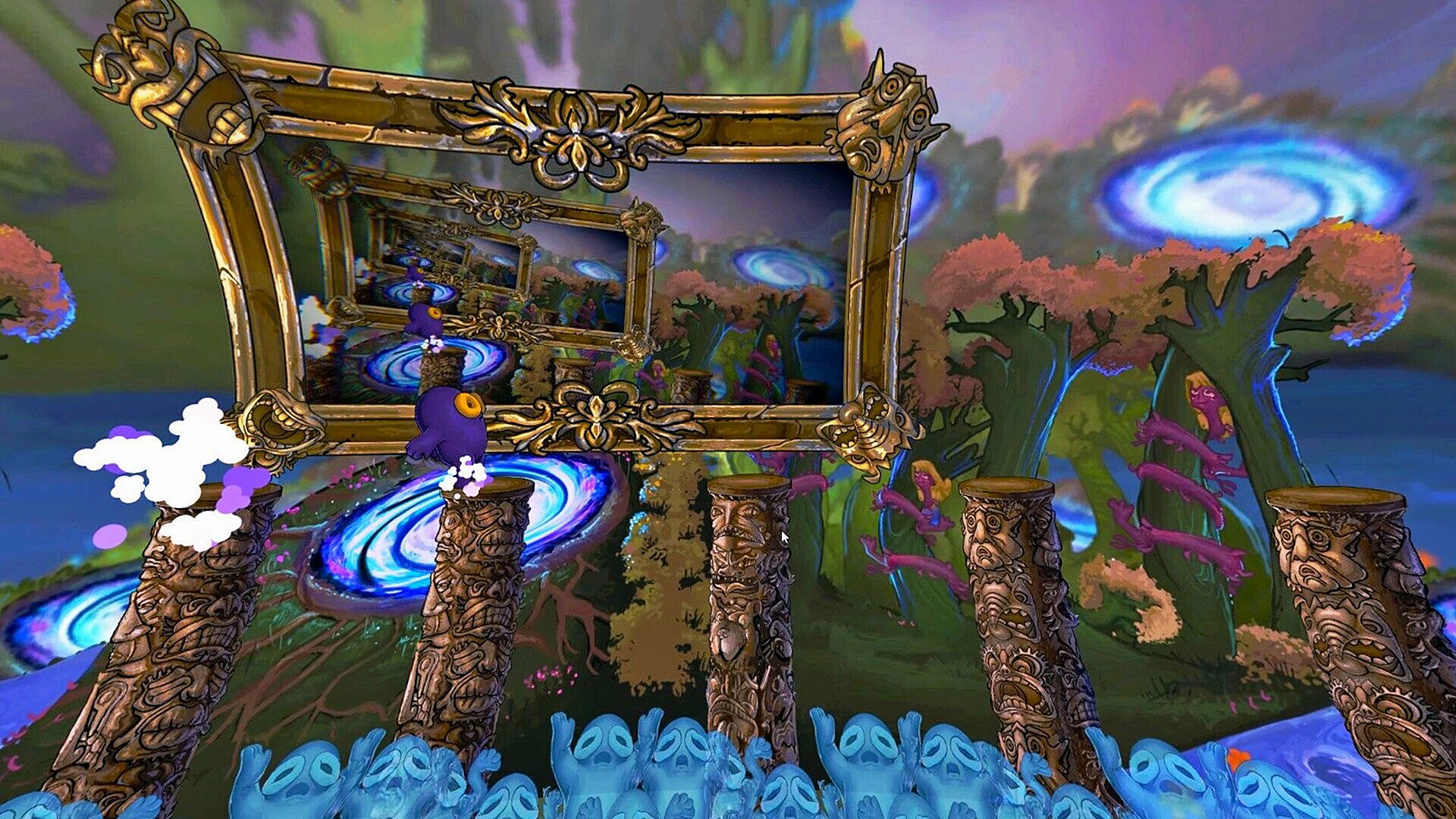 In arcade mode you can challenge yourself in three difficulties traversing 99 or 666 procedurally generated pillars, all unlocked different areas, and with friends and foes too! Race up to 3 others online to the finish!