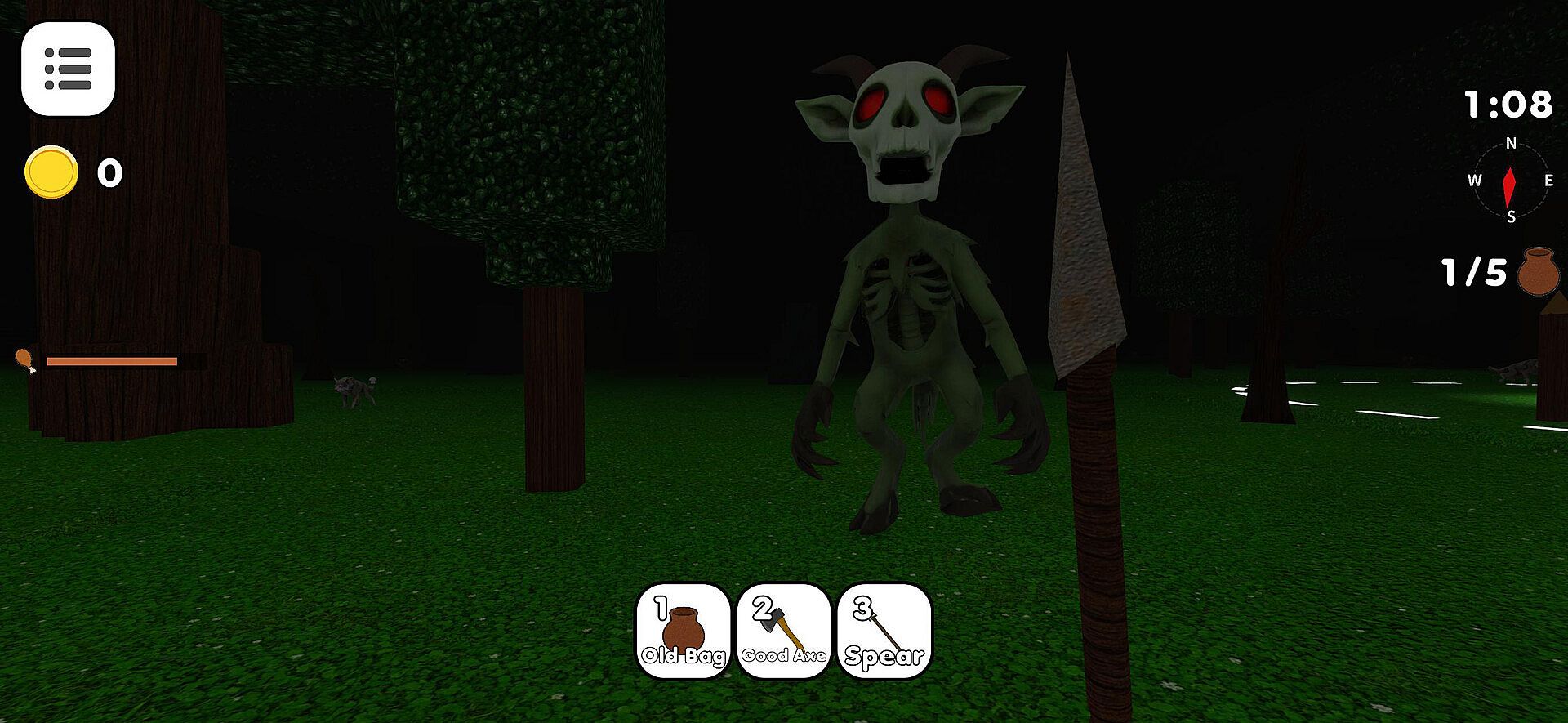 The wildernessā relentless hunter. The fabled Bonehorn Beast appears every night, stalking anyone outside the camp fireās protection, it grows more dangerous over time. Light is your only defence. Outrun it, or stay within the fireās glow.