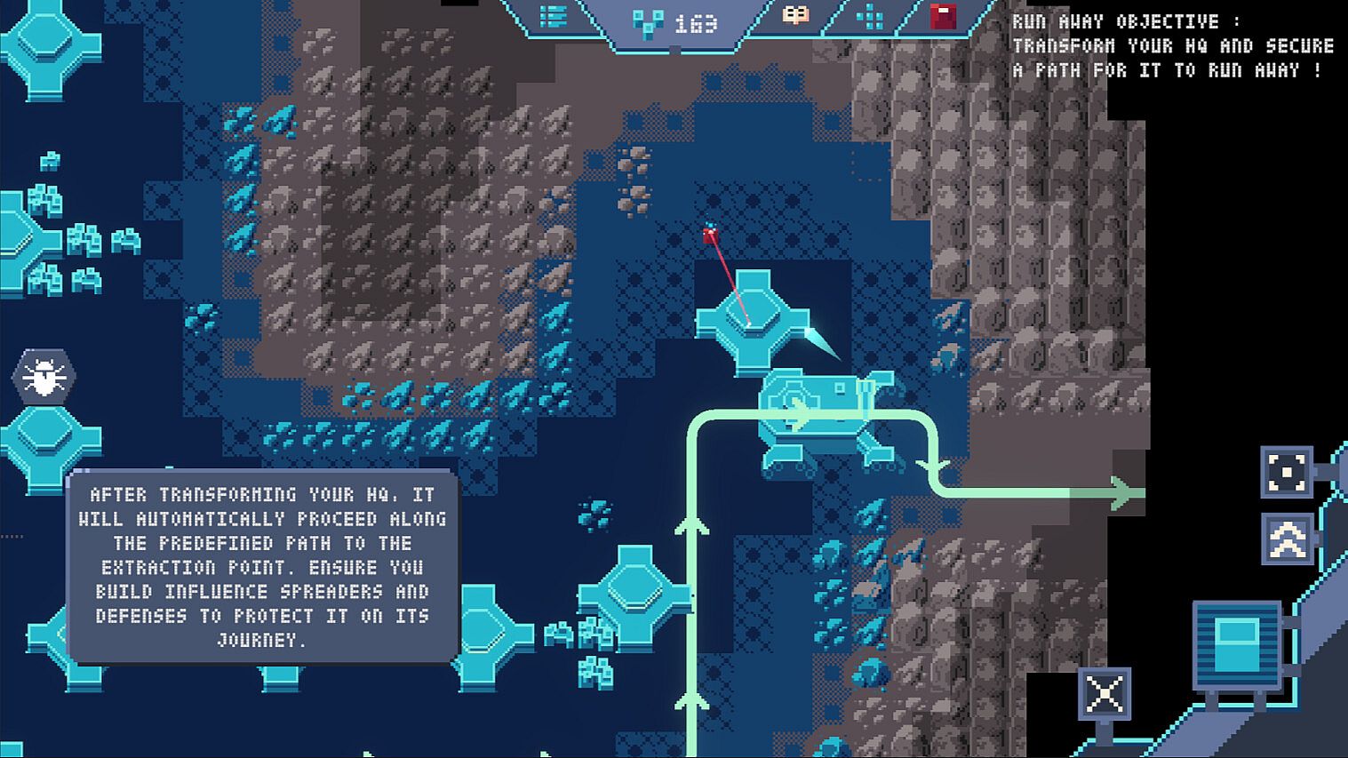 Expanding your influence is one of the crucial mechanics to take over the area around you. Your influence starts with your HQ, which generates a permanent spot of influence, to continue extending your reach strategically place influence spreaders, amplifying your control over the surrounding area.