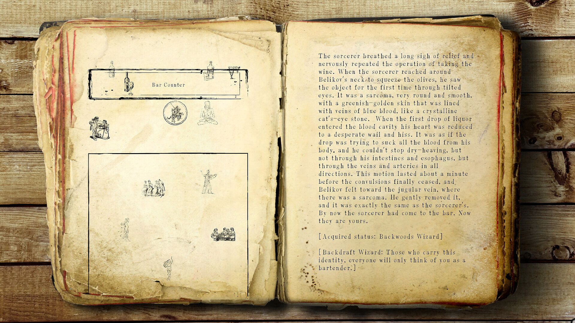 A Chronicle of Occultism in Skinnerburg is a text adventure game that attempts to explore the possibilities of combining literature and gaming by driving gameplay through character building and environmental interactions and by hosting the narrative experience in novelistic and poetic texts. Explore Skinnerburg, a place where witchcraft traditions coexist with modern life, and interact with a wide variety of environments and characters, triggering literary and readable poetic texts, building character personalities and idiosyncratic tendencies, and experiencing the joy of maneuvering through a unique point-and-click combat and interaction system.