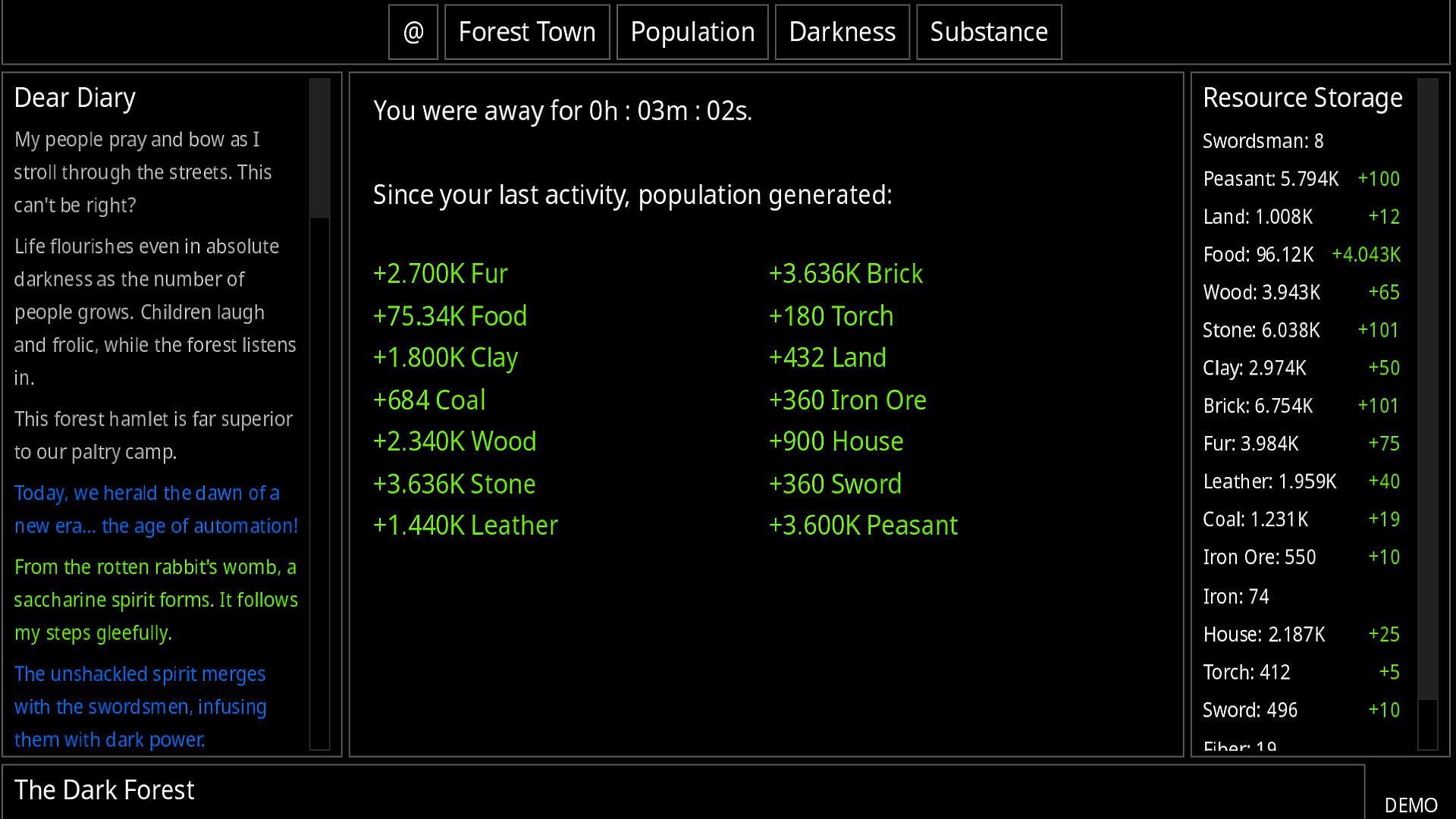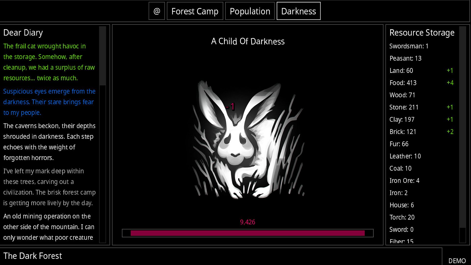A Dark Forest is an incremental idle horror game about discovering the unknown within and without yourself.
