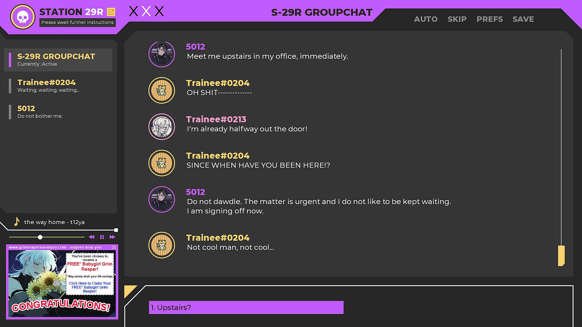 Create your own custom character, from appearance to pronouns, walk around your base and meet other Grim Reapers, and flirt your way to a number of good and bad endings.