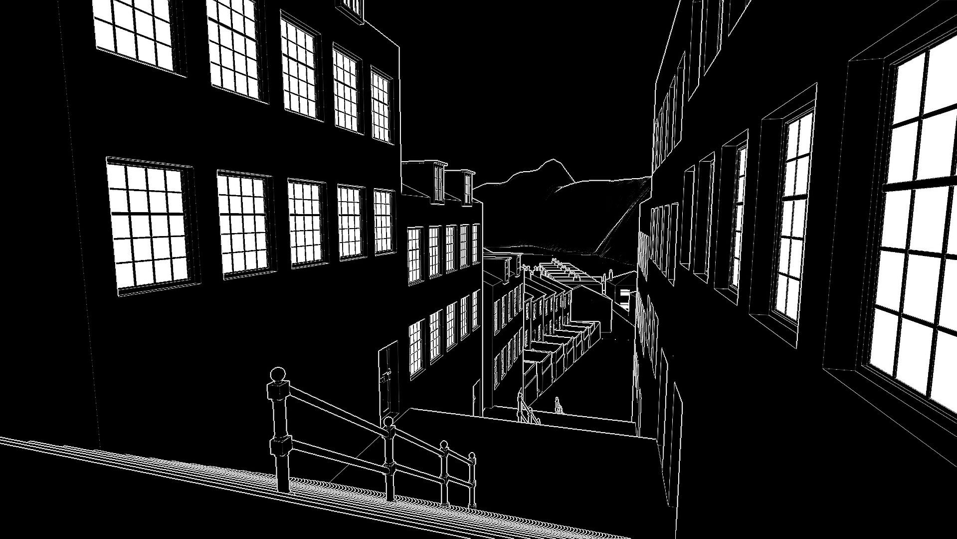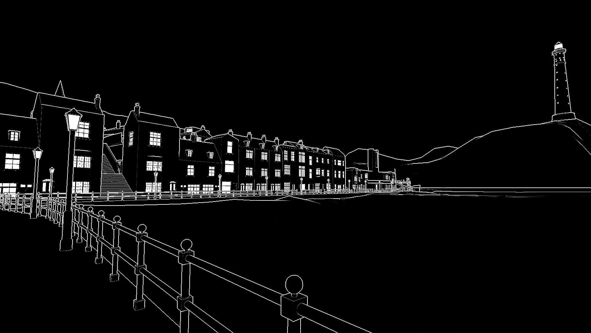 - A unique visual style with objects being drawn using white outlines in an otherwise dark world.