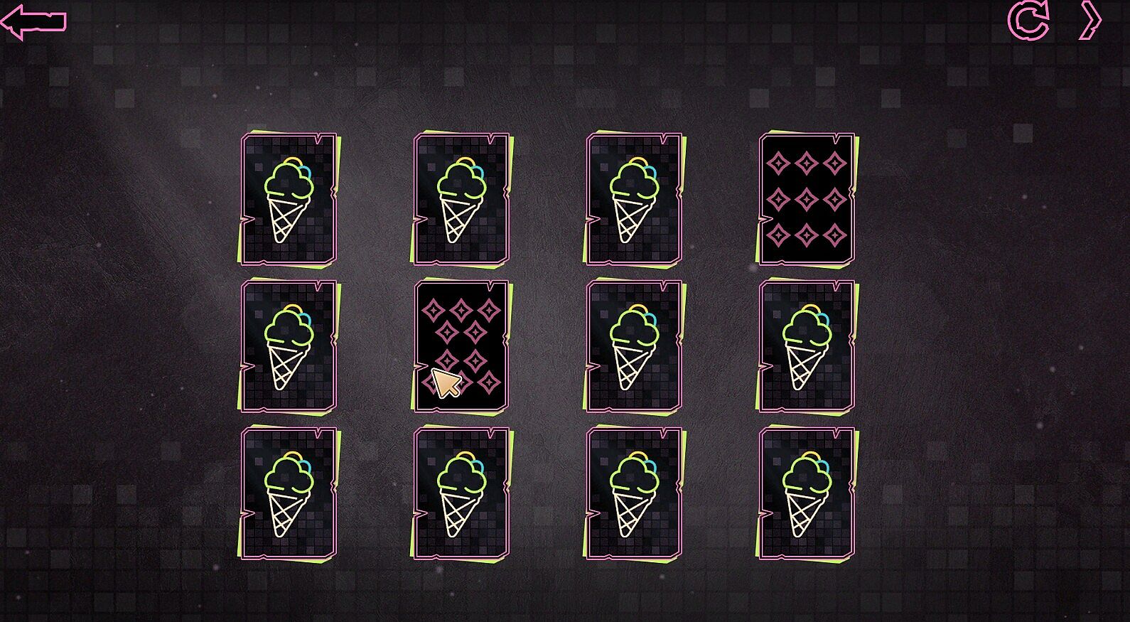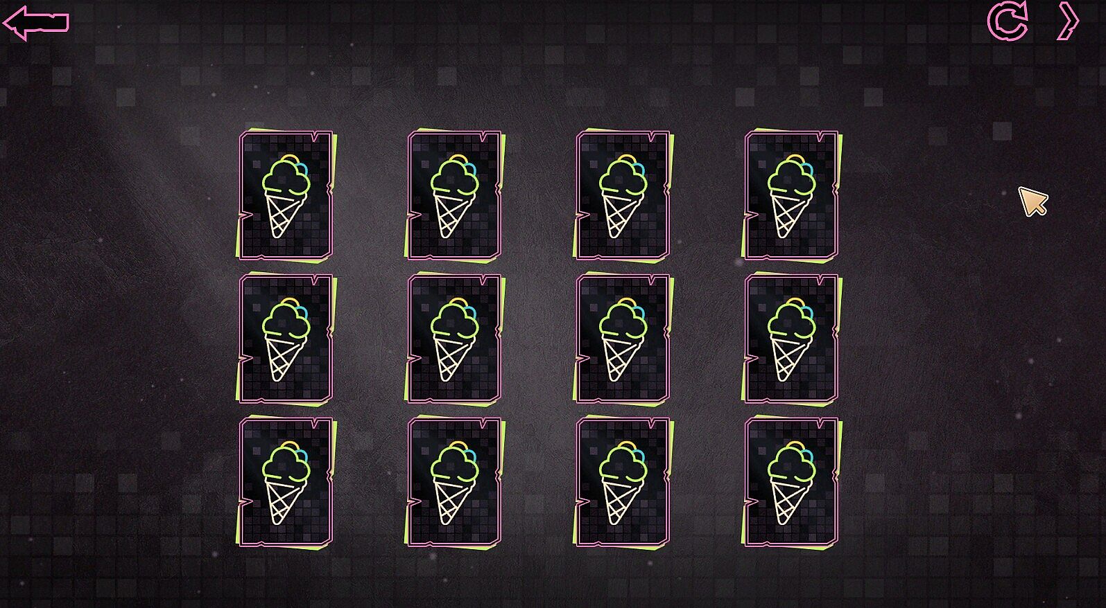 In the game, you need to flip the cards with the mouse. The ultimate goal is to find two cards with the same pattern and eliminate them; conversely, if the flipped card pictures are inconsistent, there will be no change. When all the cards on the screen are cleared, you can pass the level and unlock more character pictures.