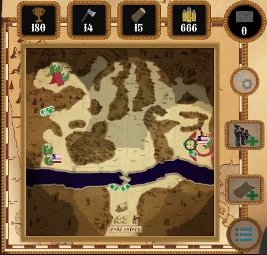 • Frontier Management: You're a long way from home out west and wagon trains are few. Wisely manage your soldiers and prestige earned - or be prepared to go out like Custer.