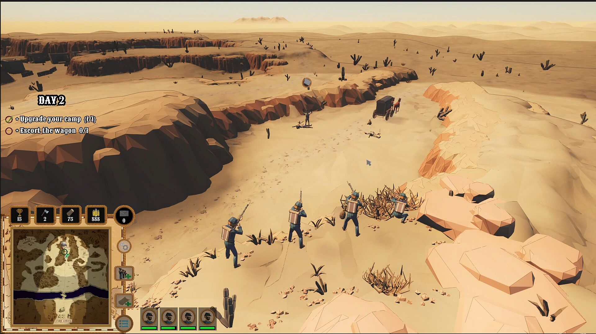 Inspired by spaghetti western classics, A Fistful of Yankees is a real-time strategy game set in the heyday of the Wild West. Lead a squad of Yankee soldiers into cinematic fights with bandits, navigate treacherous badlands, and unravel a devious plot straight out of a Western comic book!