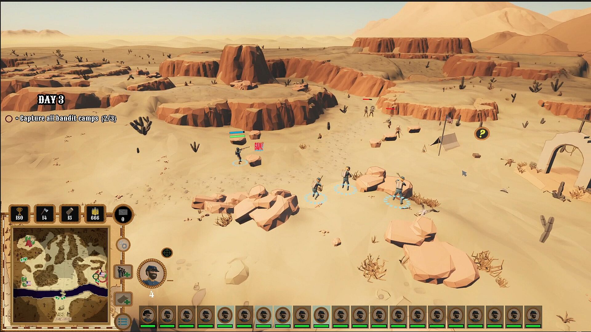 It's 1865. The fires of the Civil War have died down and America is once again expanding westwards. The Wild West is a frontier where everyone lives and dies by the gun. You are the captain of a squad of government soldiers sent to bring law and order, to hunt down the bandits and robbers that plague honest folks just trying to make a living out west  - and unknowingly step into a much larger fight...