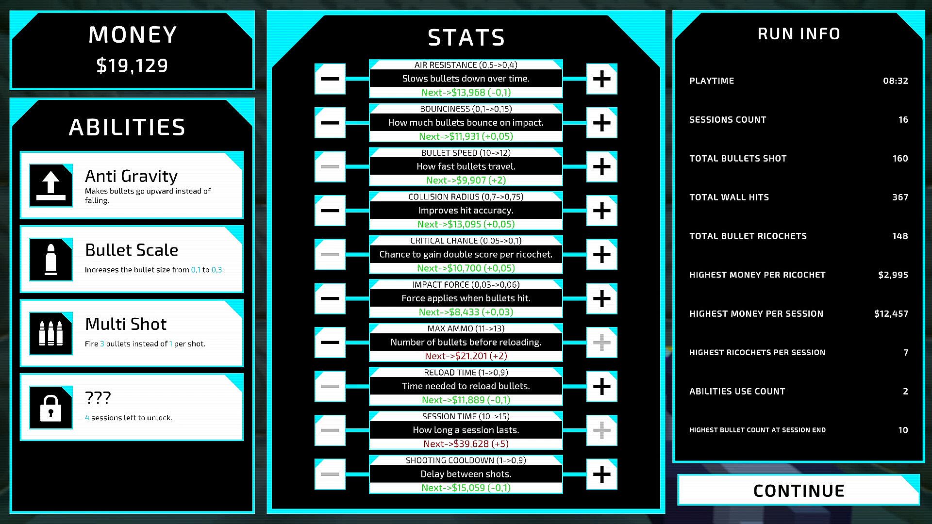 Your bullets never disappear and are not affected by gravity. They stay in the room, collide with each other, bounce, and create endless interactions. Every session turns into a chaotic sandbox of motion, collisions, and score explosions.