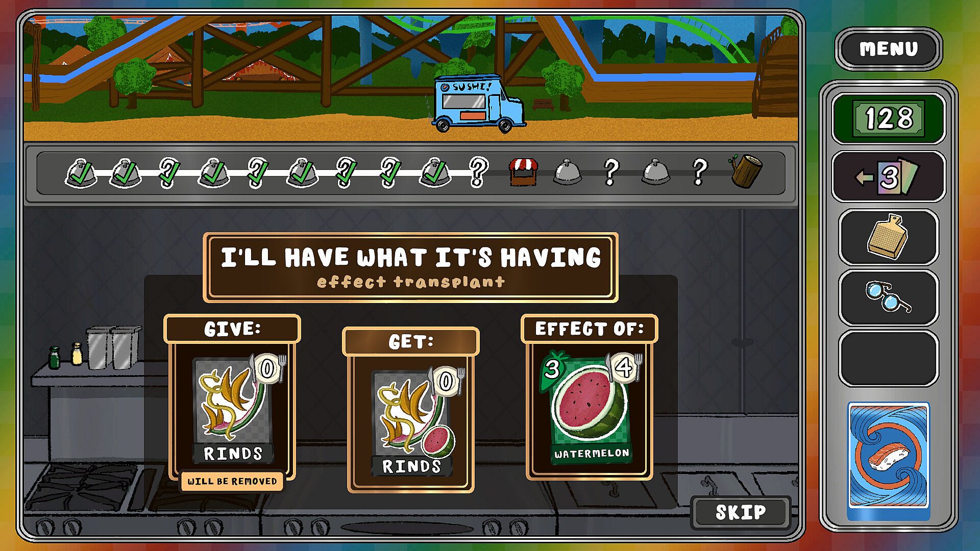 A la Card is a food truck deckbuilding roguelike where you'll mix and match the best aspects of every card you find to create absurd synergies and make new discoveries every time you play!