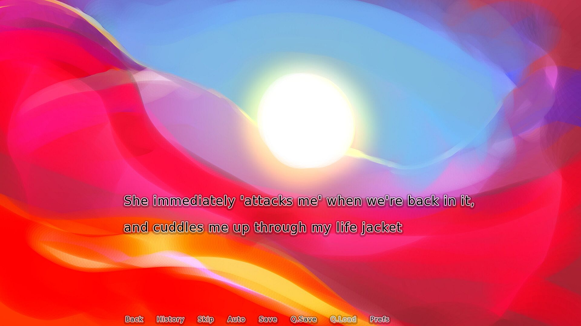 In fact... she stays in the boat and waits for me to wake up, sad about what happened.