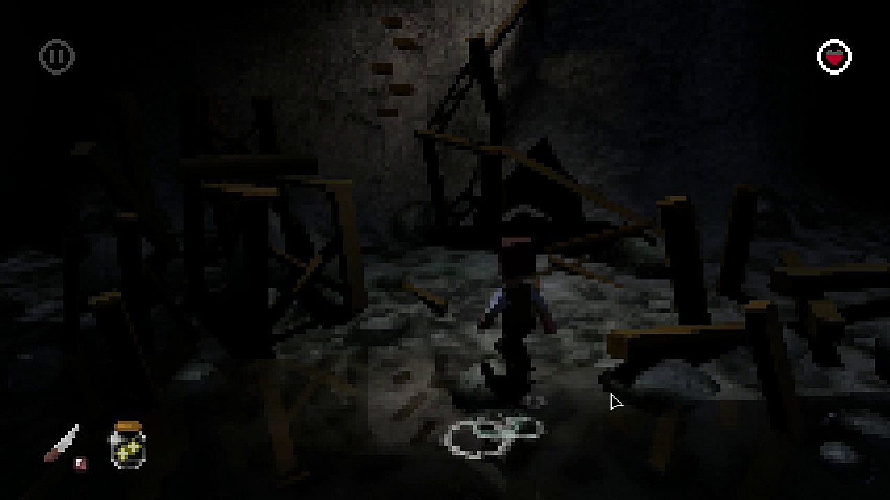 Outside the cave you find yourself in a forest which is surrounded by deep gorges and thick layers of fog. A crowd of people lives here in fear of an ominous apparition that creeps through the fog for manhunt.