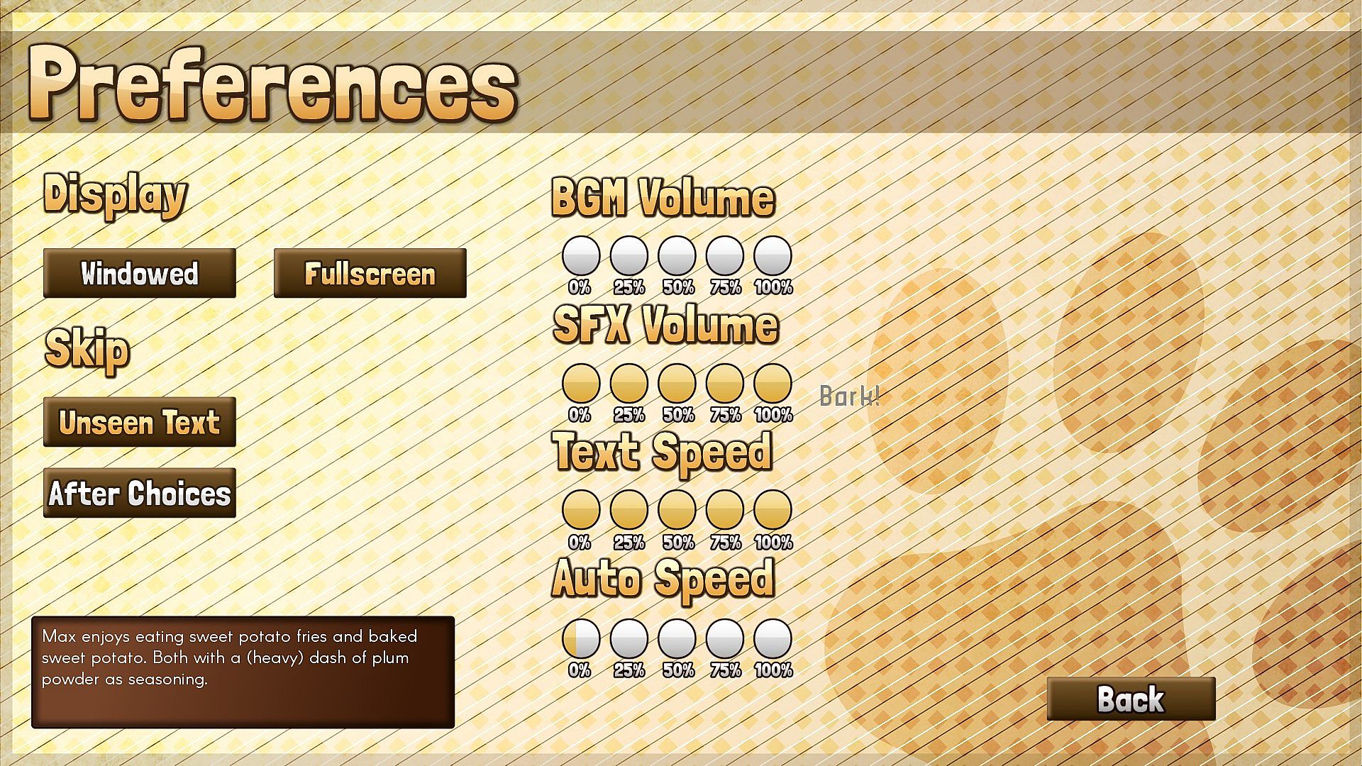 • Dog bark button in preference menu