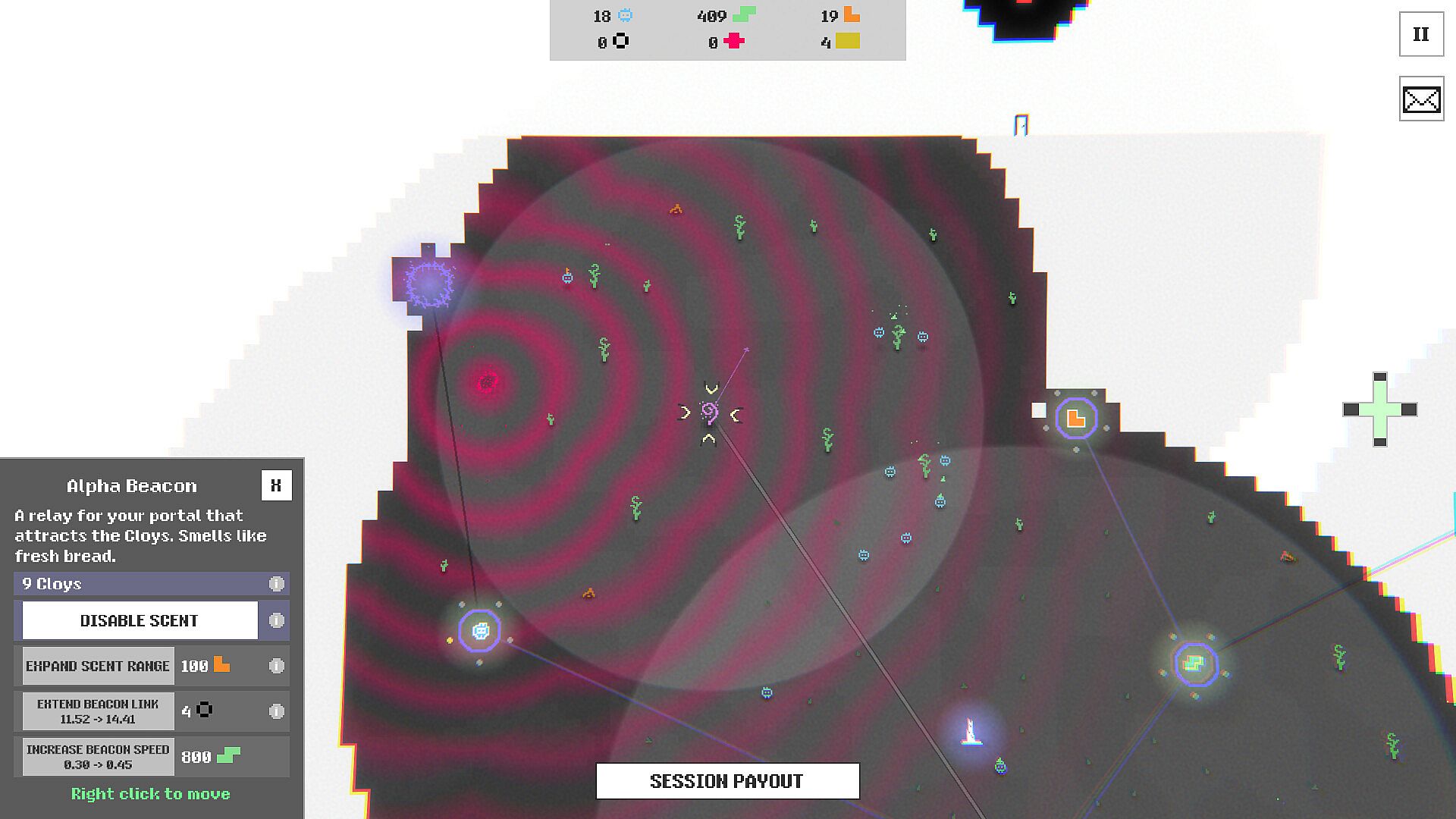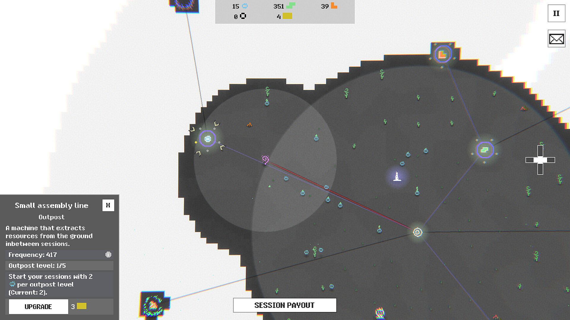 Once you've accumulated a big enough payout during a session, end it, upgrade your permanent outposts, let the world rest, and start a new session to earn an even bigger payout!