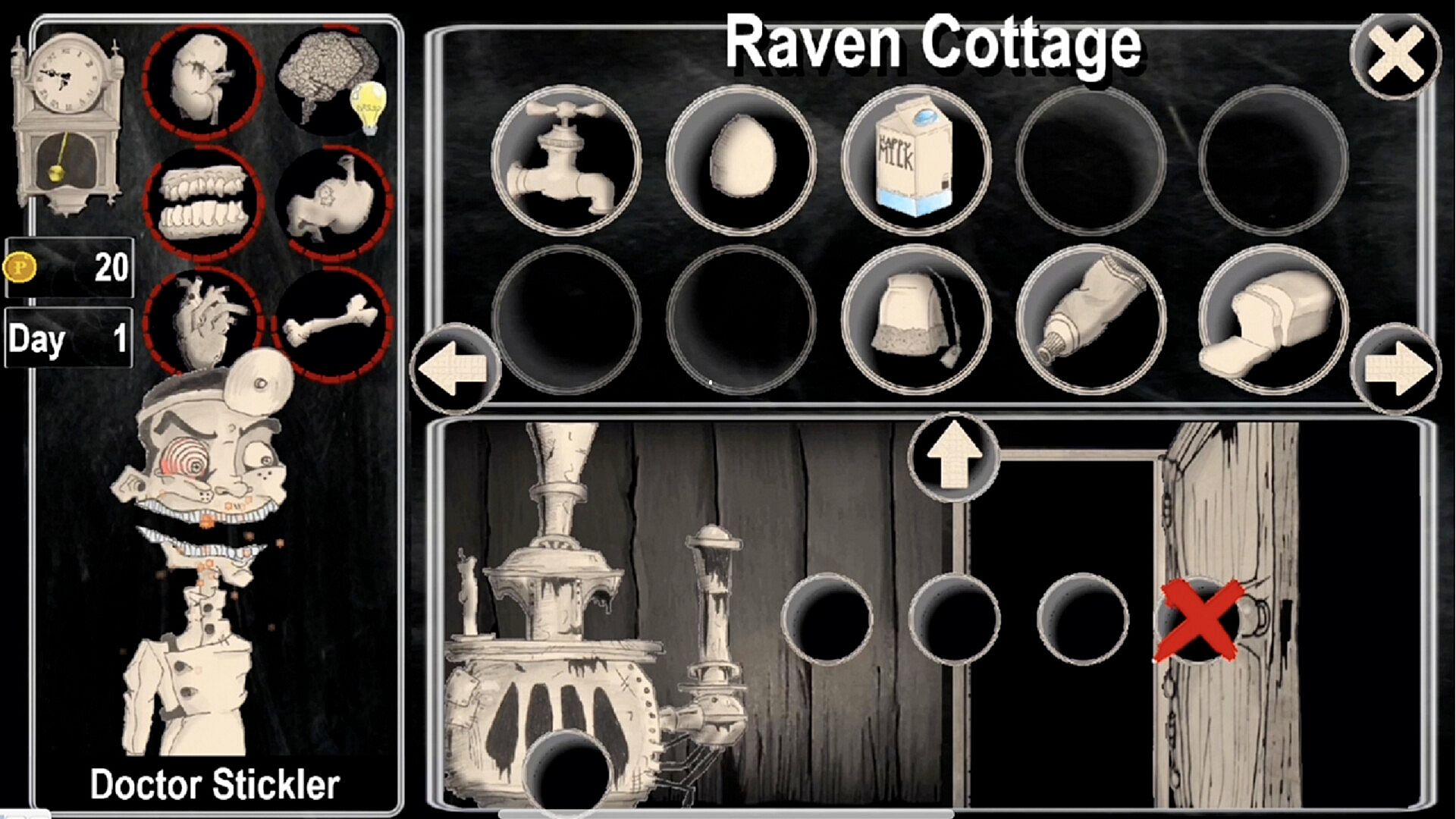 • Life Simulation: Dr. Stickler’s vital attributes—tiredness, hunger, thirst, warmth, and more—must be managed while treating patients, running schemes, and navigating village life. Failure to maintain health affects performance and can result in hospitalization.