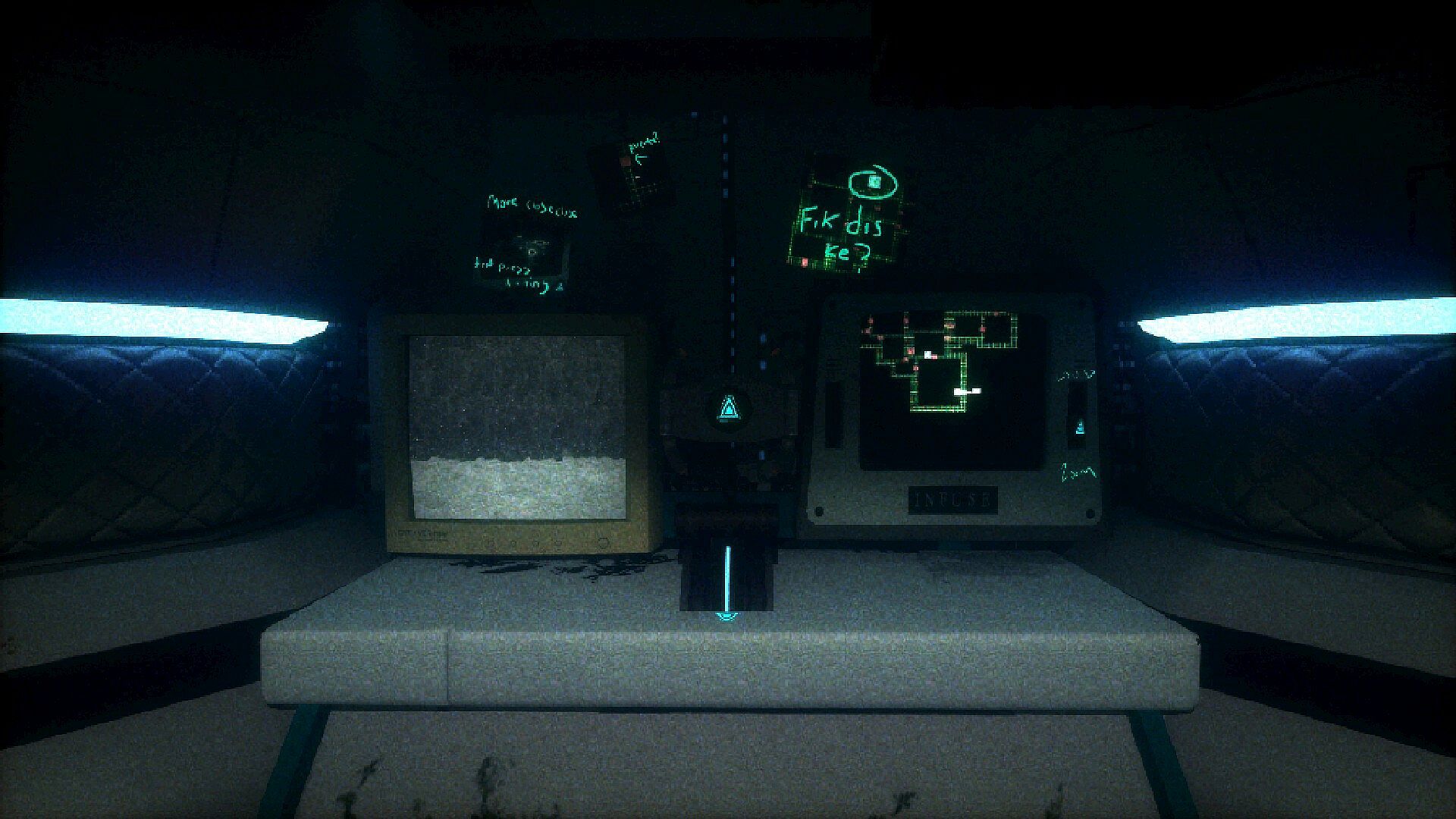Experimental minimalist gameplay, where your senses can fail at any time and anything could be lurking around you