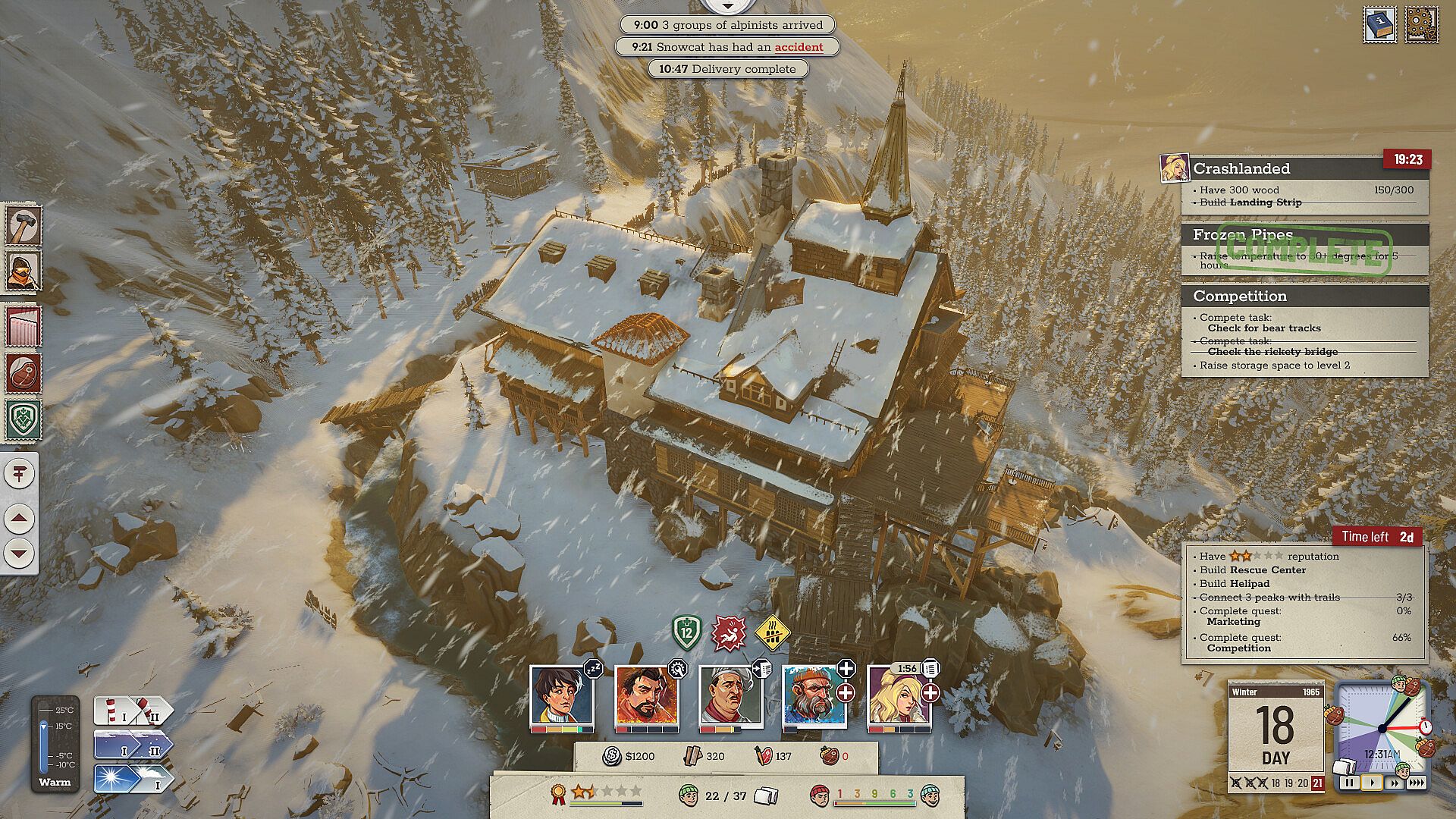 Above the Snow is a one-of-a-kind story-driven management game about a crew of friends running a mountain vacation business!