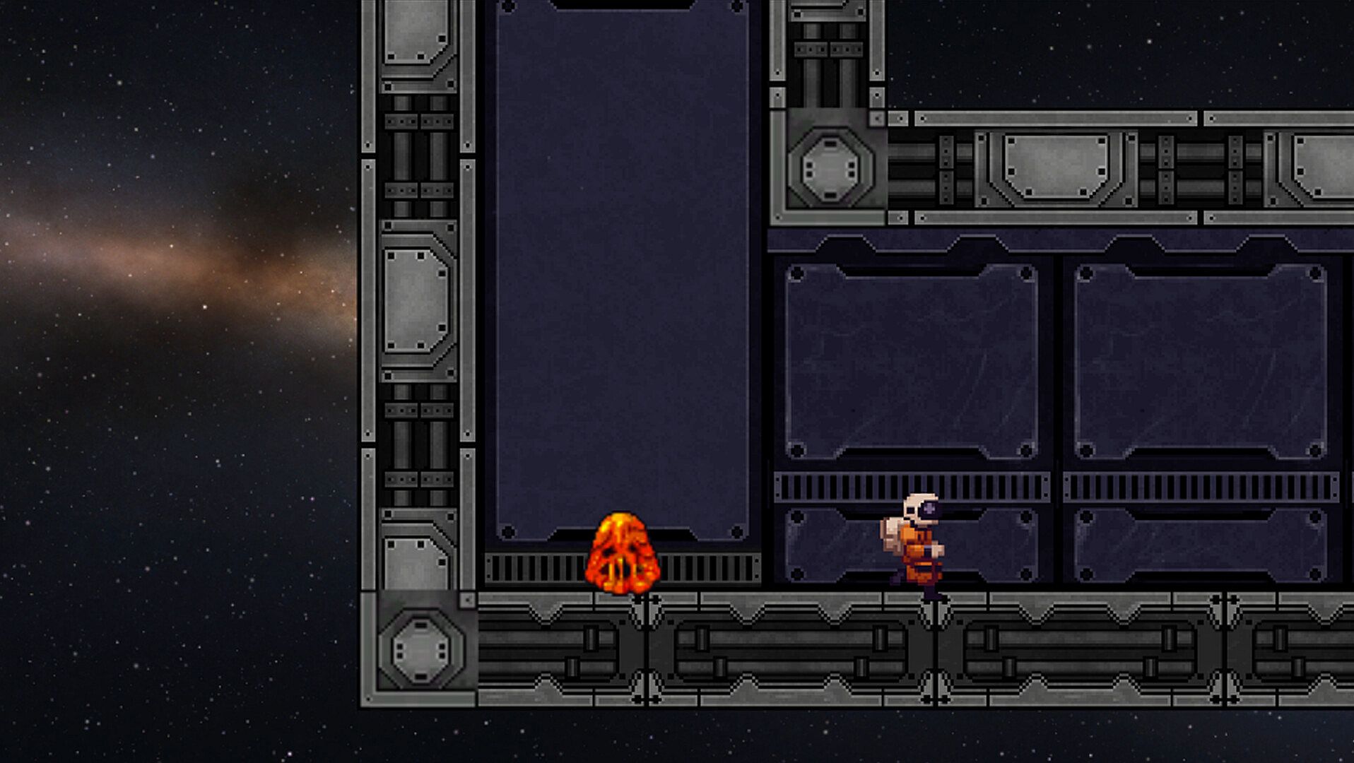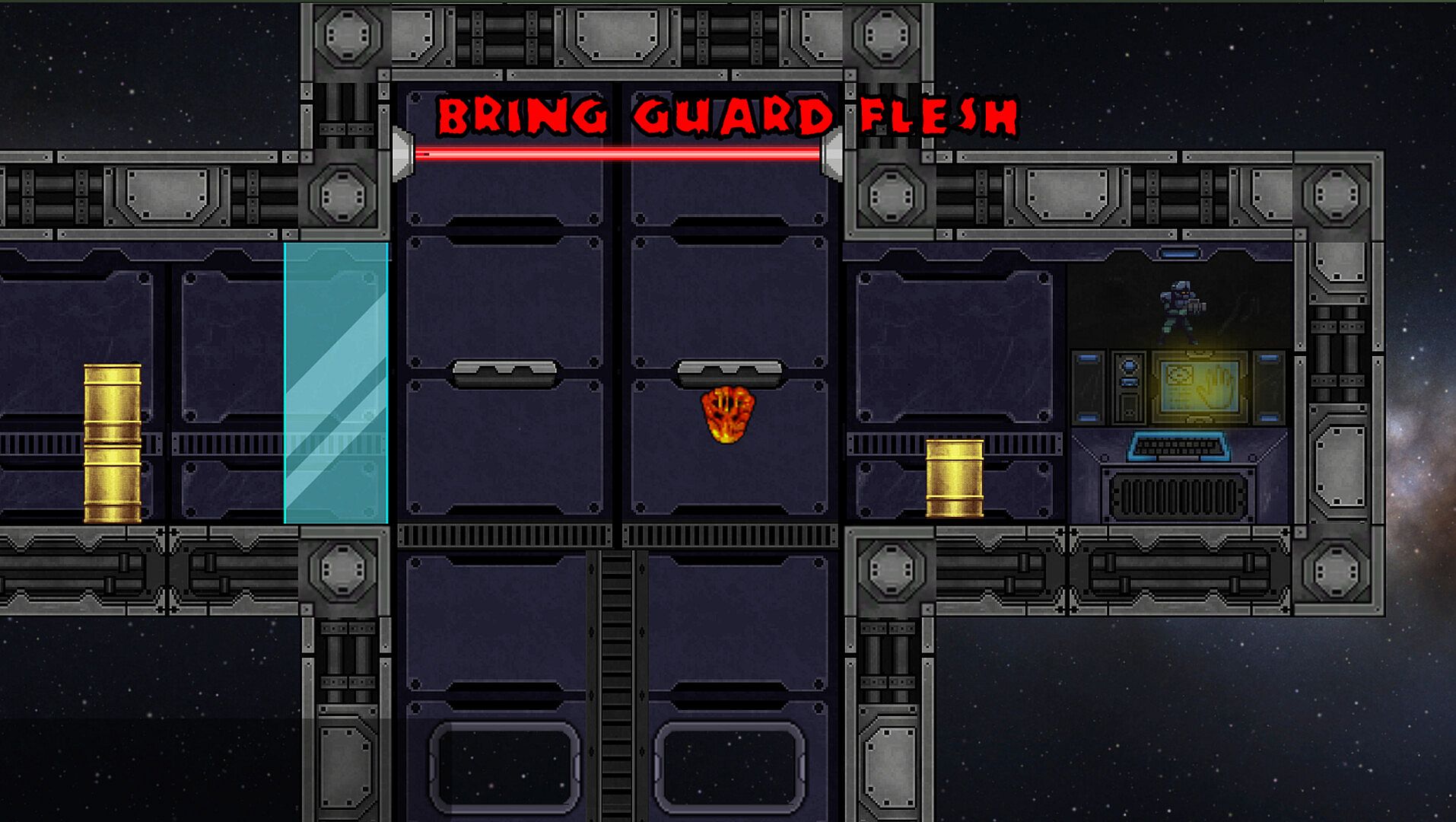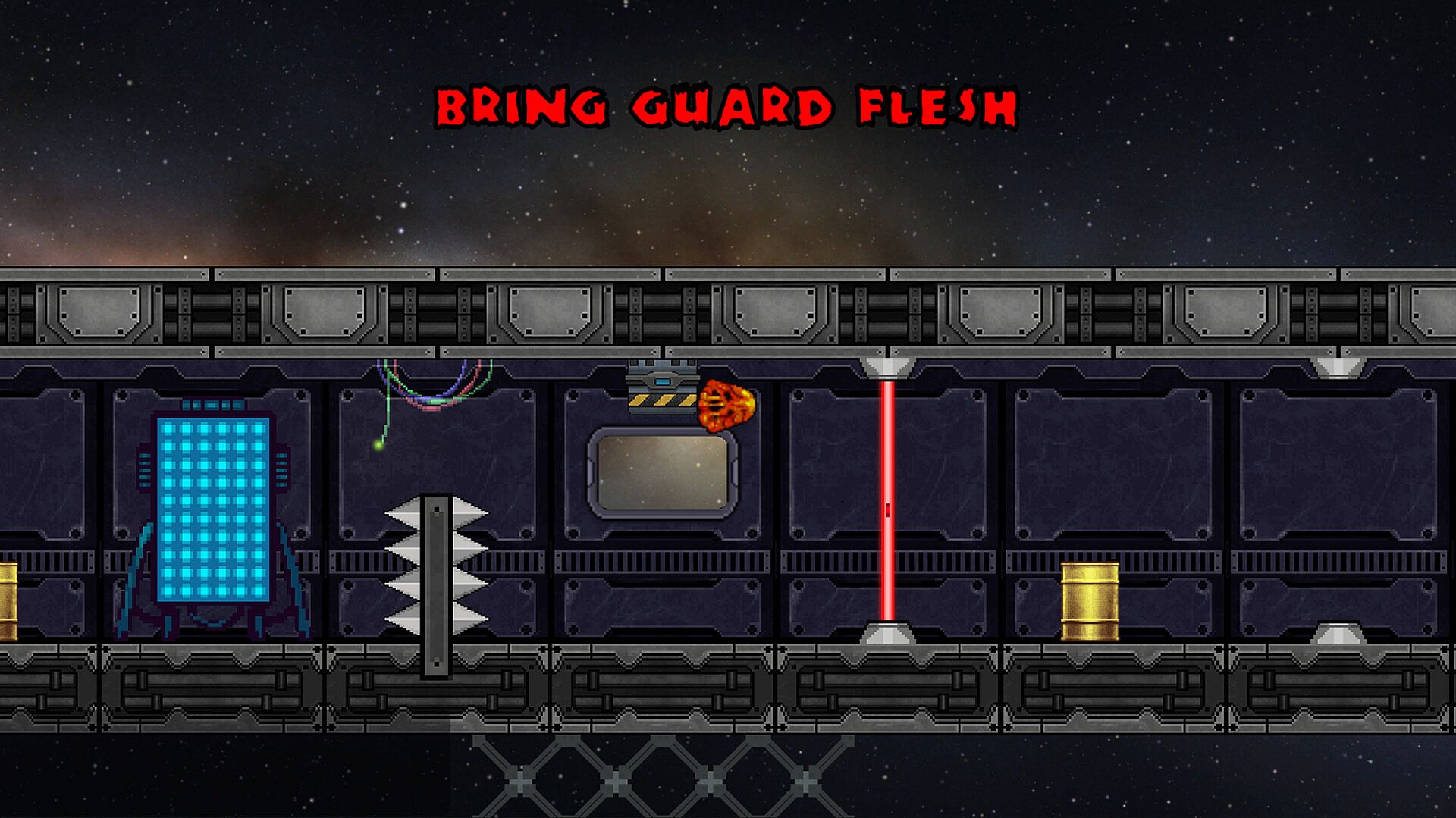Absorb is a reverse horror game in which you are a hungry amorphous blob monster from a recently discovered planet. The explorers who found you had no idea you would hitch a ride onboard their ship and begin eating your way through their space station base in pursuit of the stolen core. As the blob, bounce and maneuver your way through distinct environments in this single player 2D physics platformer where you will devour any hostile forces you can and avoid, through careful positioning and aiming, the ones you can't. Fling yourself across the station, dodging hazards and eating enemies you encounter along the way.
