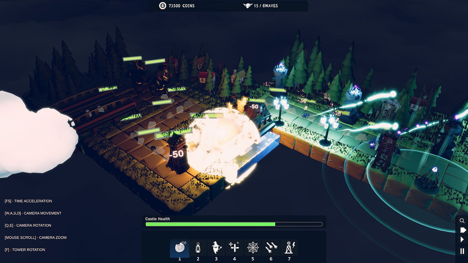 • One castle, one attempt, one world. Defend the last kingdom in one of an infinite number of worlds or give it to the darkness, testing your strength next time. All the lands of the world above the clouds are lost among thick clouds, and you will not be able to get to where you were before.