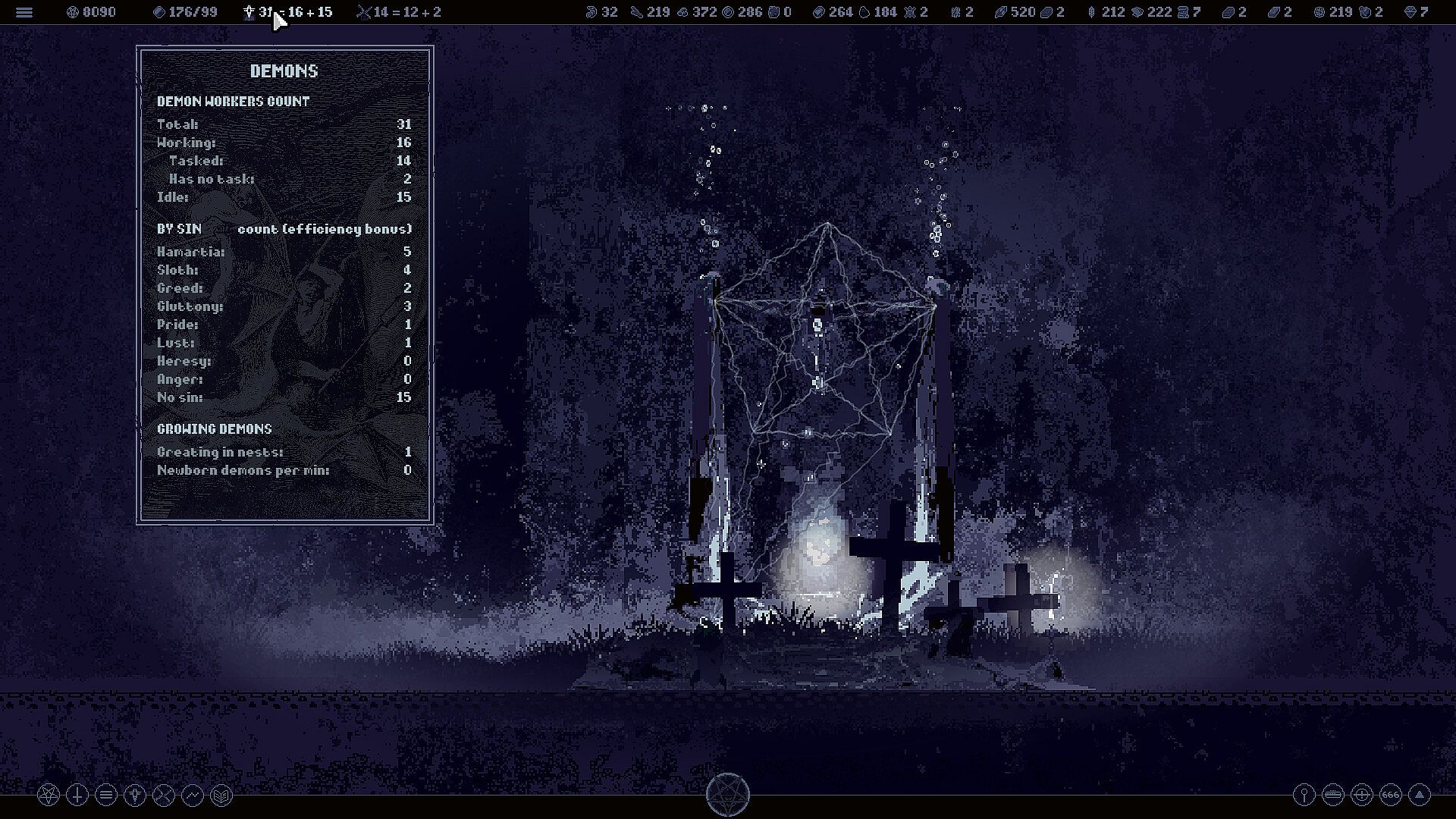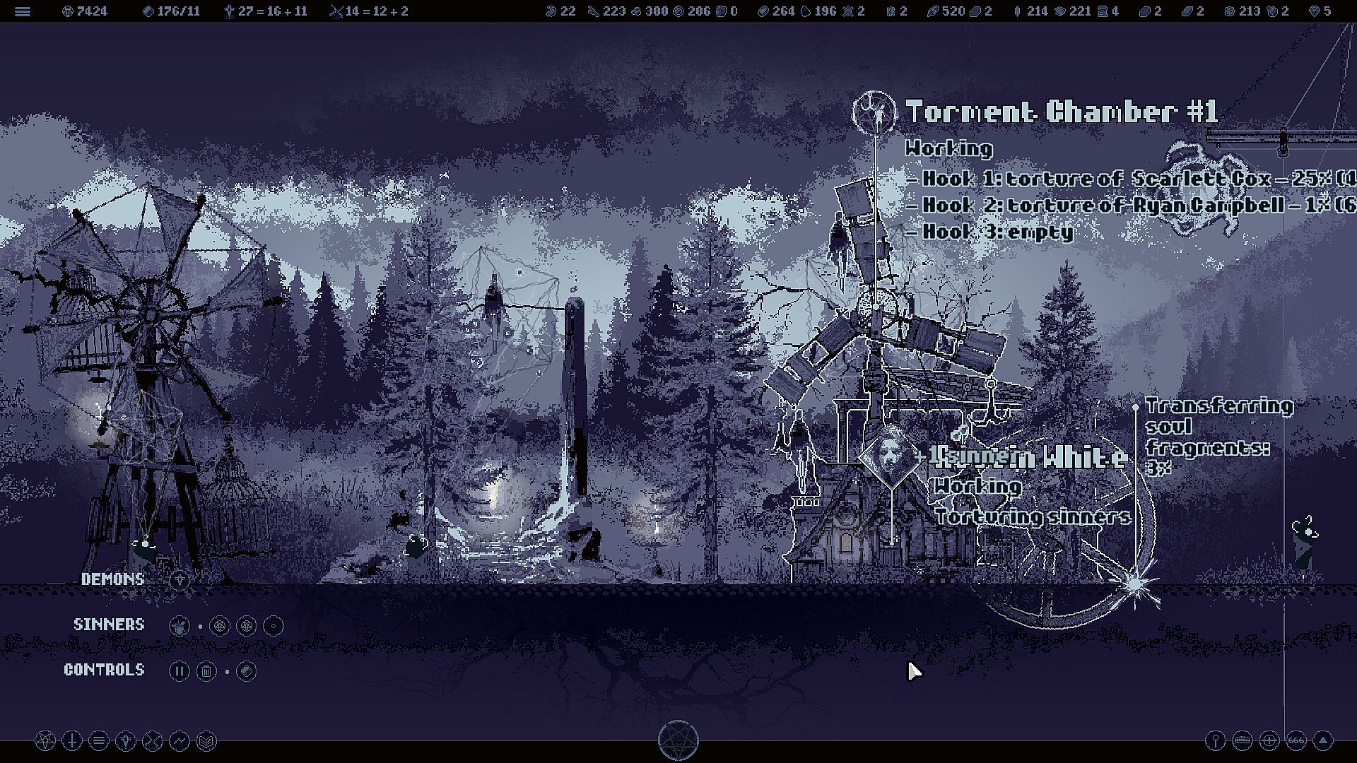 The infrastructure of Hell is organized around the deadly sins. "Sloth" is responsible for production, while "lust" is responsible for reproduction. And So On! There are various resources, but the main one is sinners with their stories and crimes. The script sends them straight to Hell. You will have to catch them and process them, extracting sin and fragments of the soul or creating new demons using them. As you progress in the game, you will move down to new circles. It's darker down there.
