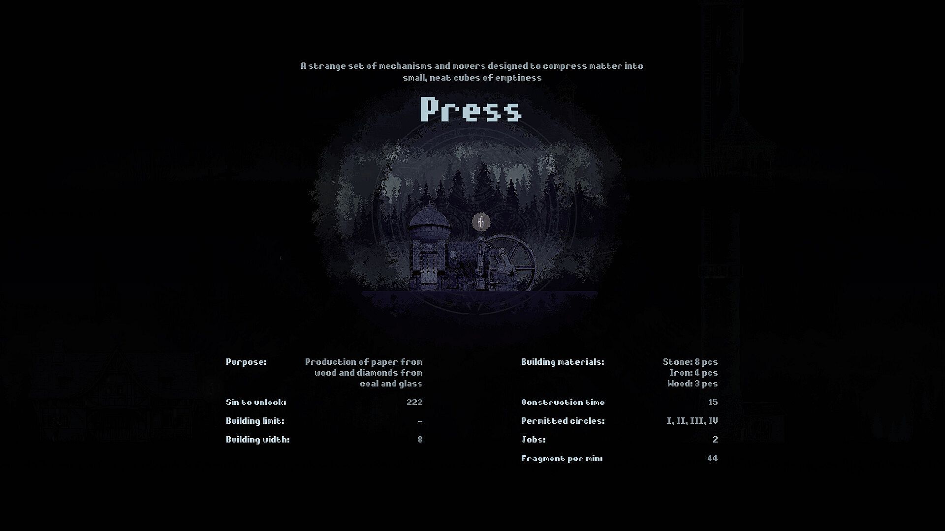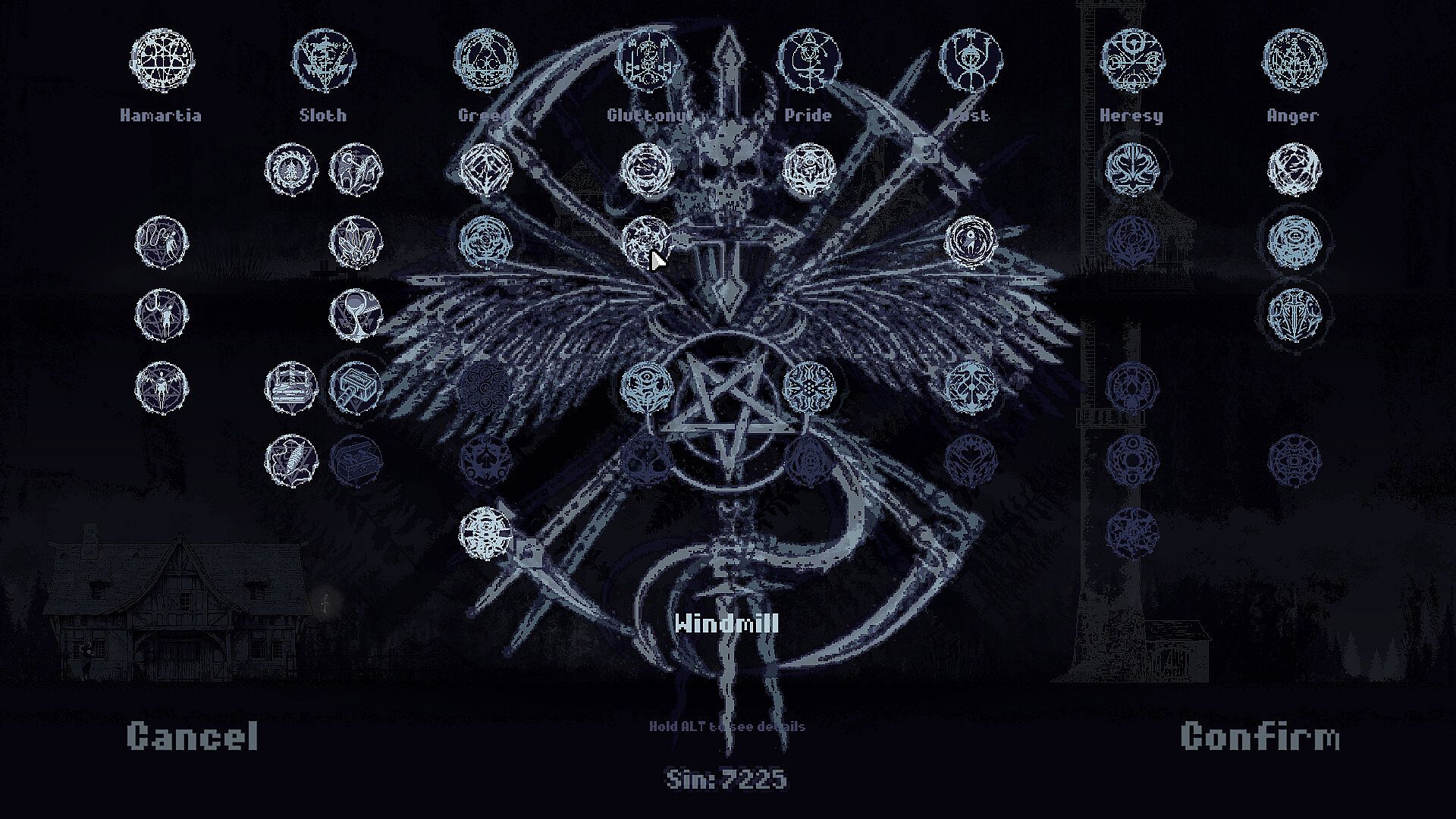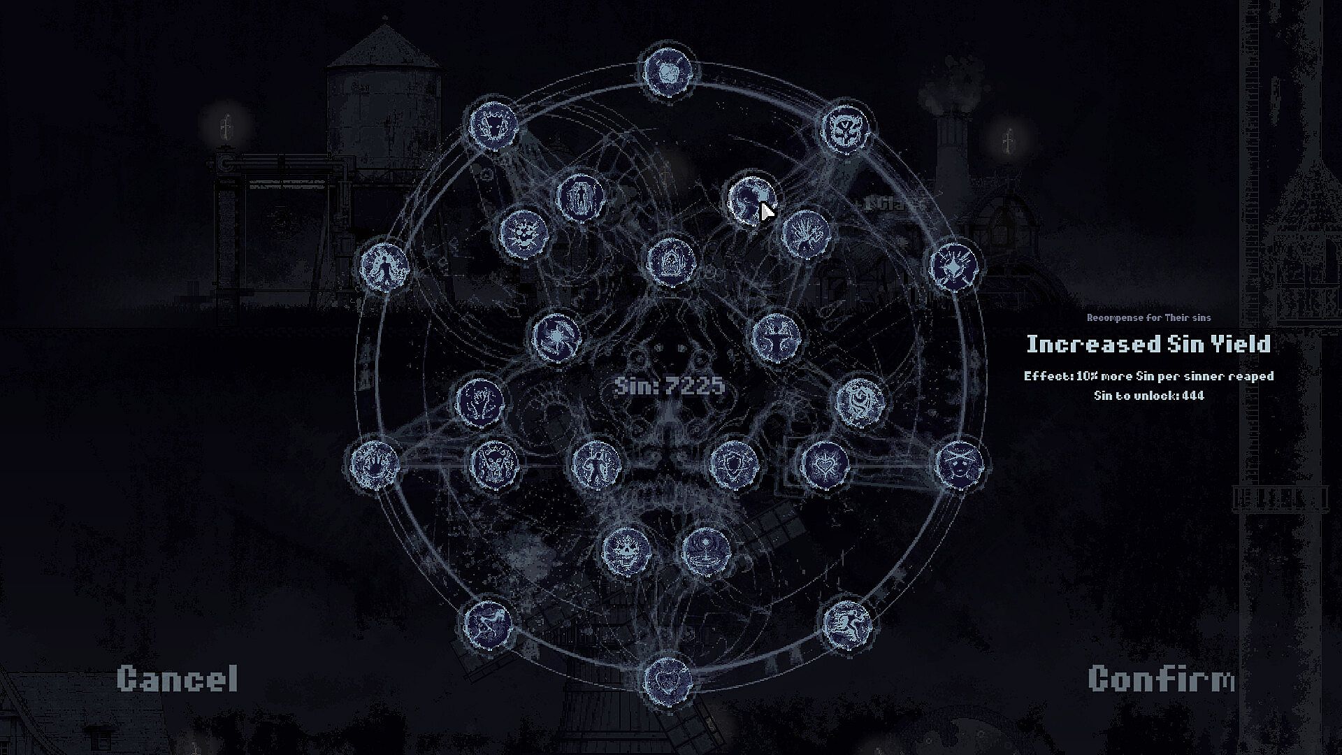 What do the holy invaders want? To destroy the Heart of Darkness (the main building). If it falls, you will have to start everything over. Almost everything. Sin (experience) is spent on learning skills and unlocking new buildings. This knowledge is not lost, meaning you become stronger with each session.