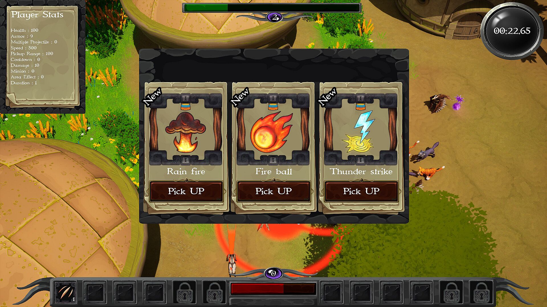 5 Playable Heroes, 14 Spells, 11 Passive Upgrades – Choose from unique heroes and powerful spells, combine them with passive upgrades, and find your perfect playstyle.