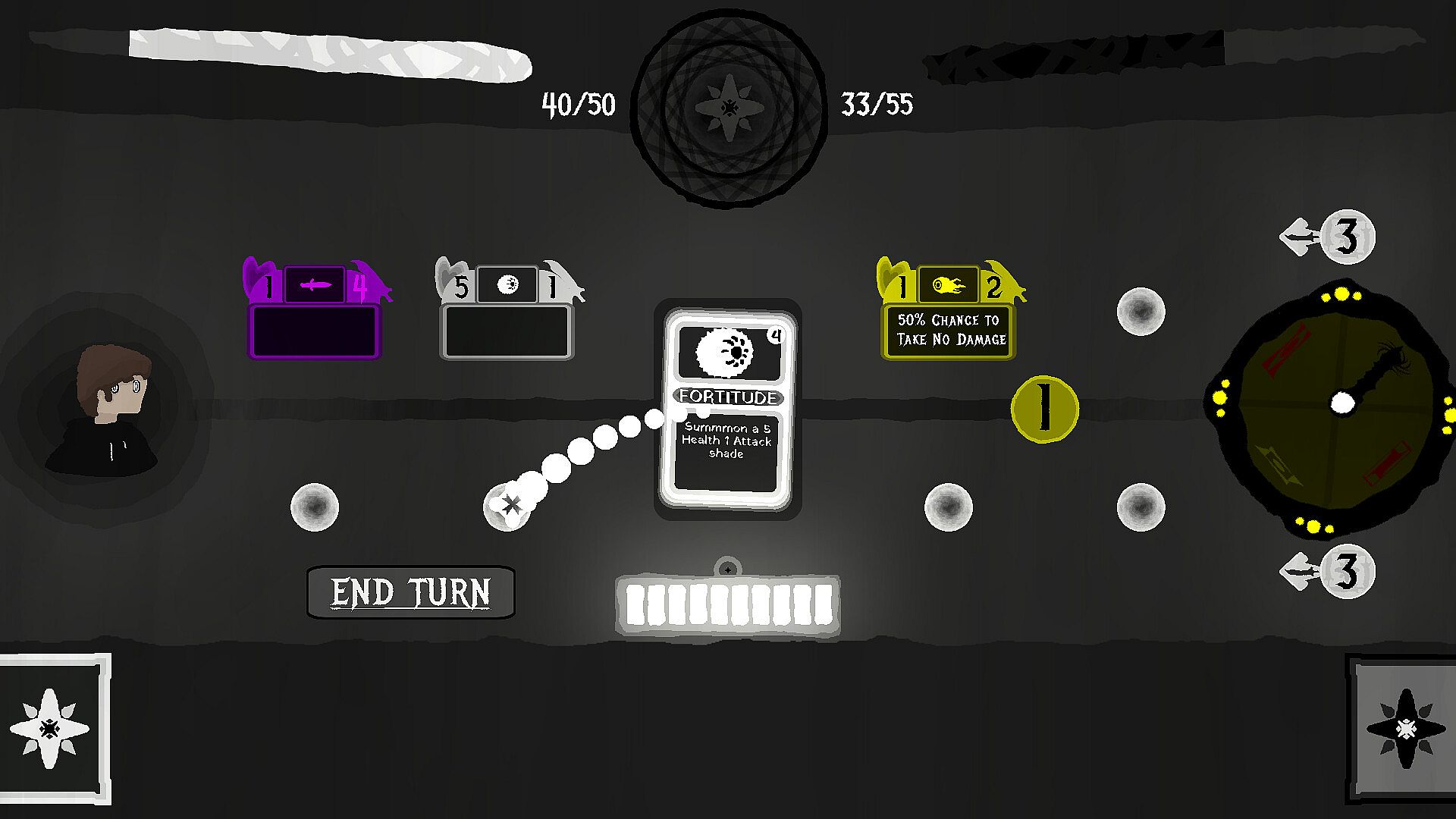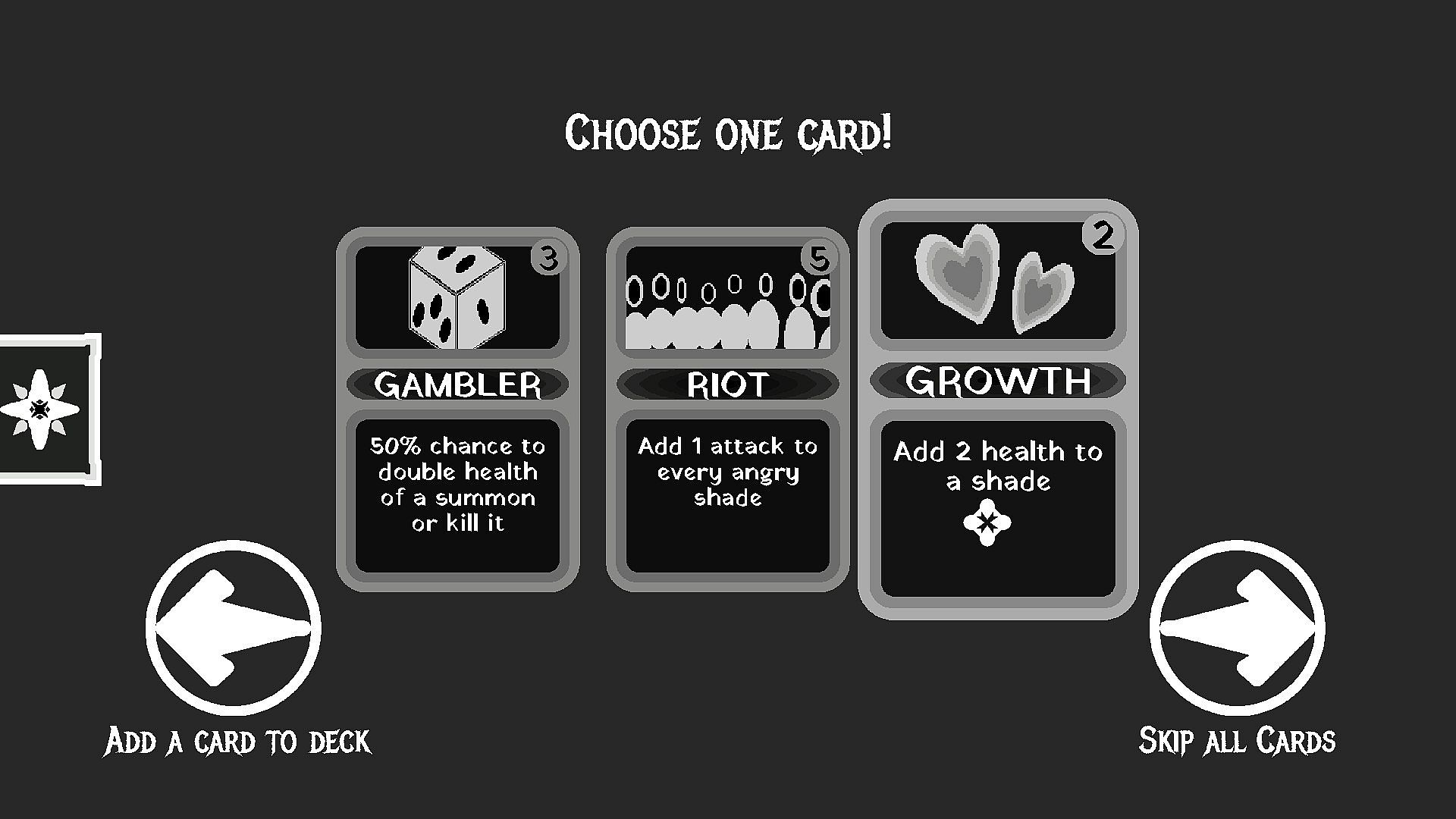 Abyssal Shade is a deck building roguelike where you dive into a dungeon of the mind. Receive the blessings of your emotions and wield them to destroy the Shades that reside within! This game takes place in the void that consists of layers. Each layer has a long deck building roguelike section where you expand and use your deck from the previous floors to defeat your opponents. In between these card game segments there are a variety of top-down rpg puzzles that grant you rewards as you delve deeper into the layers. The battles consist of turn based combat where you play cards from your deck to summon allies and attack your enemy while defending yourself from damage.