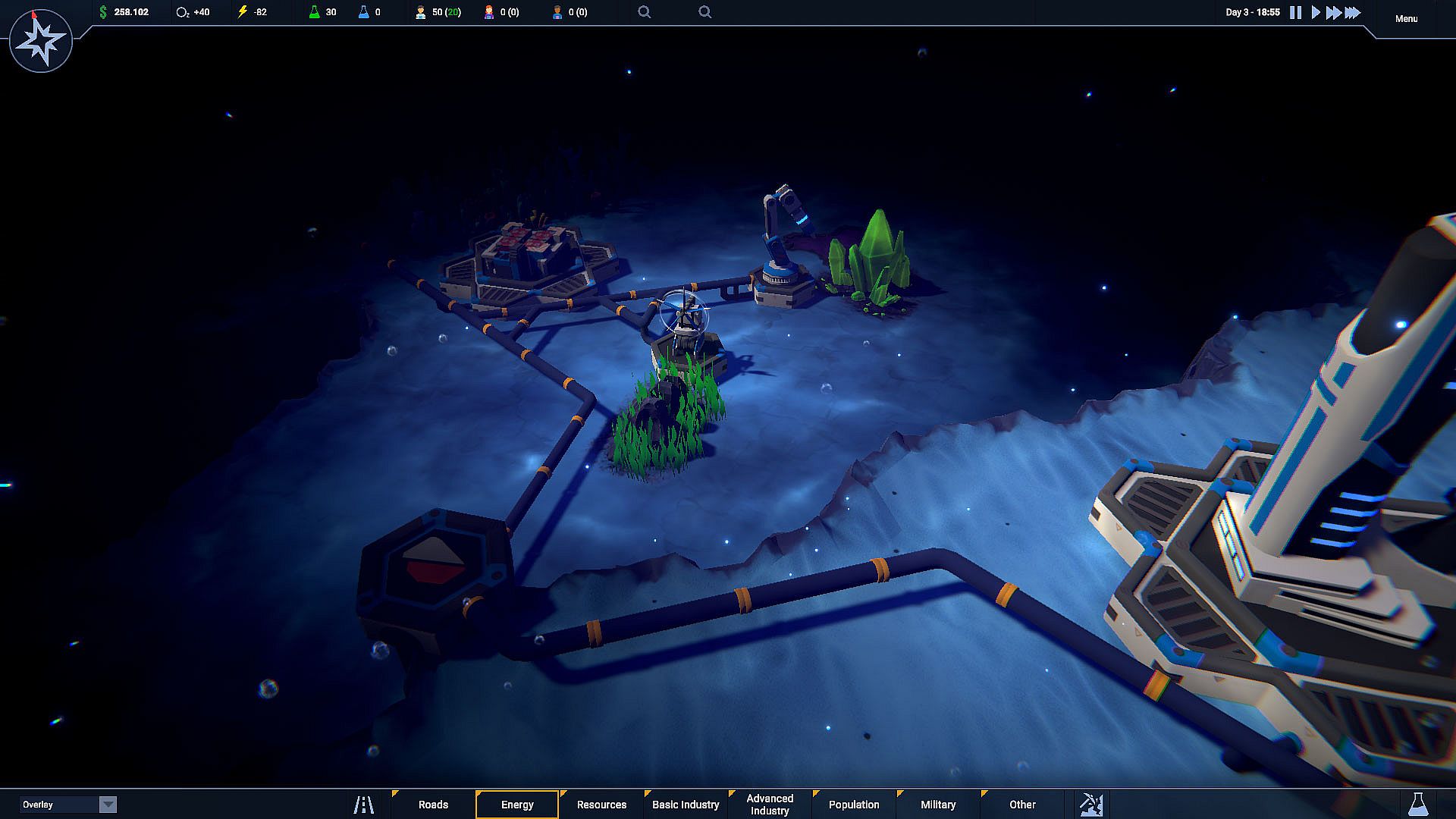 As the last bastion of human society, settle in the depths and create a strong light and oxygen infrastructure to survive. Improve your energy sources and optimize your consumption.